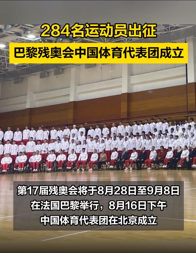 新華社北京8月16日電(記者鄭直 胡佳麗)16日,巴黎殘奧會中國體育代表團在北京成立。代表團總人數516人,其中運動員284人。中國殘疾人聯合會主席程凱任團長,黨組書記、理事長周長奎任執行團長;黨組成員、副理事長尤亮和理事李冬生任副團長。