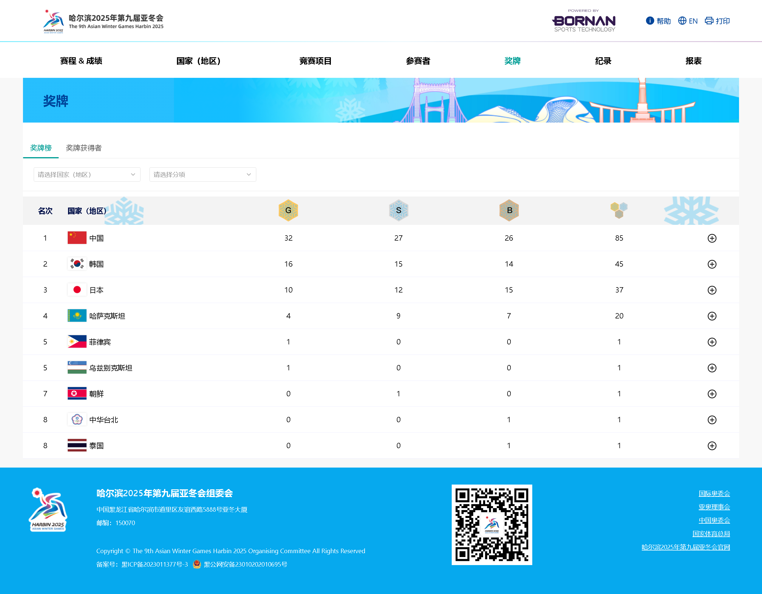 在過去8天里,來自亞洲34個國家和地區(qū)的1200多名運動員在這里突破自我、展現(xiàn)風采、成就夢想、收獲友誼,以高超競技水平和頑強拼搏精神,書寫了亞洲冰雪運動新輝煌。中國秉持“綠色、共享、開放、廉潔”的辦賽理念,以一流的場館設(shè)施、出色的組織服務(wù),贏得了亞奧理事會大家庭和國際社會的廣泛好評。中國體育代表團獲得32枚金牌、85枚獎牌,名列金牌榜和獎牌榜首位。