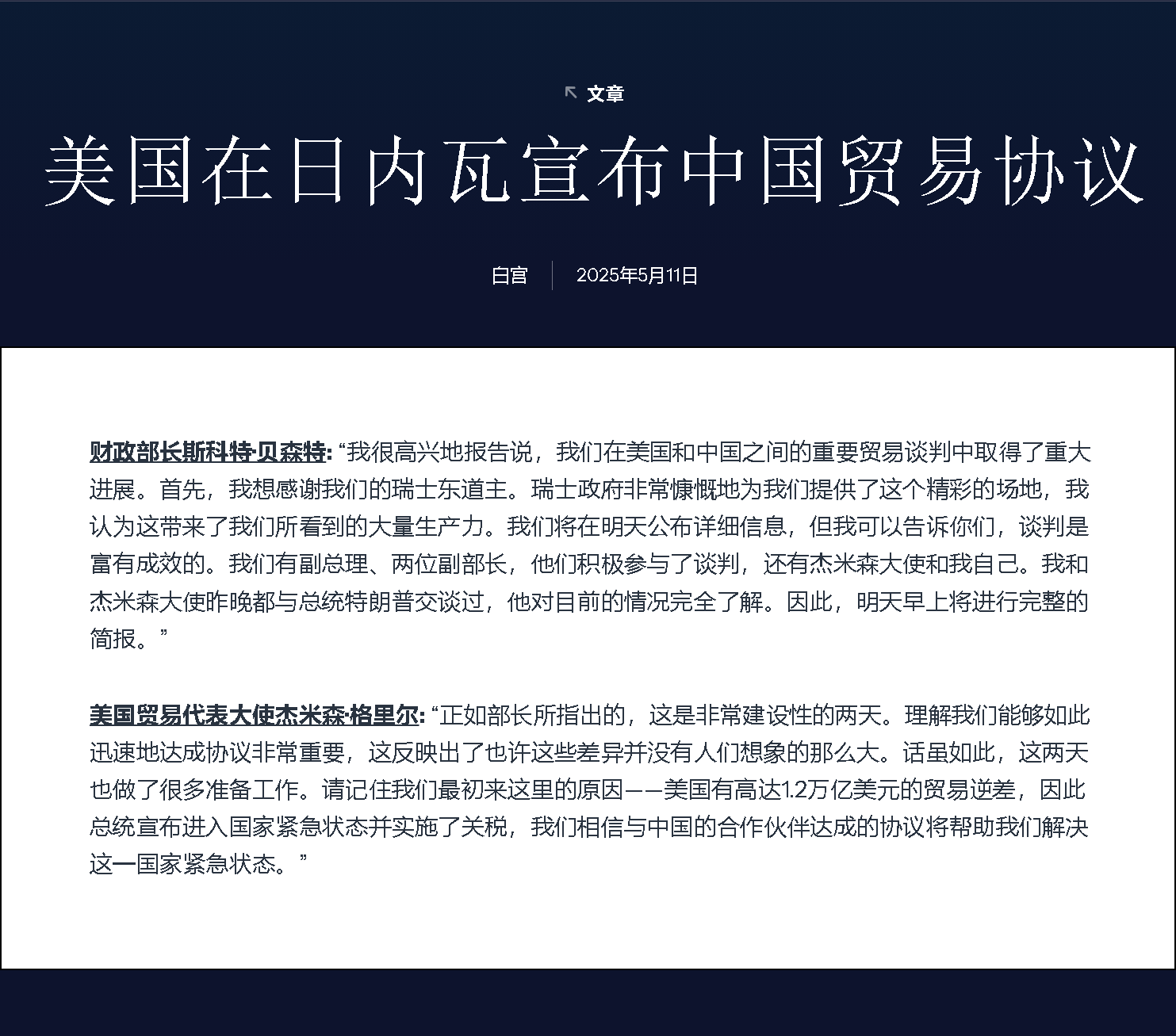 新華社日內瓦5月11日電(記者石松 焦倩)中美經貿高層會談5月10日至11日在瑞士日內瓦舉行。中美經貿中方牽頭人、國務院副總理何立峰當地時間11日晚在出席中方代表團舉行的新聞發布會時表示,此次中美經貿高層會談坦誠、深入、具有建設性,達成重要共識,并取得實質性進展。雙方一致同意建立中美經貿磋商機制。中美雙方將盡快敲定相關細節,并將于5月12日發布會談達成的聯合聲明。