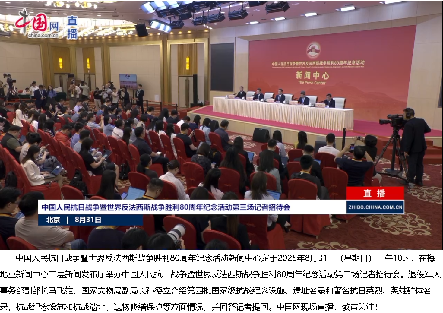 今年是中國人民抗日戰爭暨世界反法西斯戰爭勝利80周年。我們注意到,公布第四批著名抗戰紀念設施、遺址名錄和著名抗日英烈、英雄群體名錄是紀念抗戰勝利80周年的一項重要活動。能否請簡要介紹一下有關工作情況?謝謝。