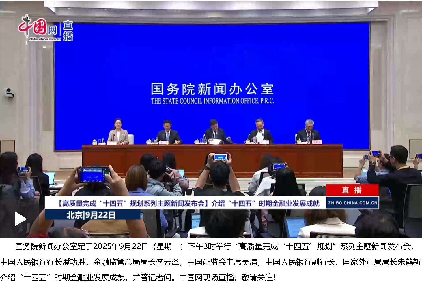 9月22日,國(guó)務(wù)院新聞辦公室在北京舉行“高質(zhì)量完成‘十四五’規(guī)劃”系列主題新聞發(fā)布會(huì),中國(guó)人民銀行行長(zhǎng)潘功勝,金融監(jiān)管總局局長(zhǎng)李云澤,中國(guó)證監(jiān)會(huì)主席吳清,中國(guó)人民銀行副行長(zhǎng)、國(guó)家外匯局局長(zhǎng)朱鶴新介紹“十四五”時(shí)期金融業(yè)發(fā)展情況,并答記者問。新華社記者 李鑫 攝