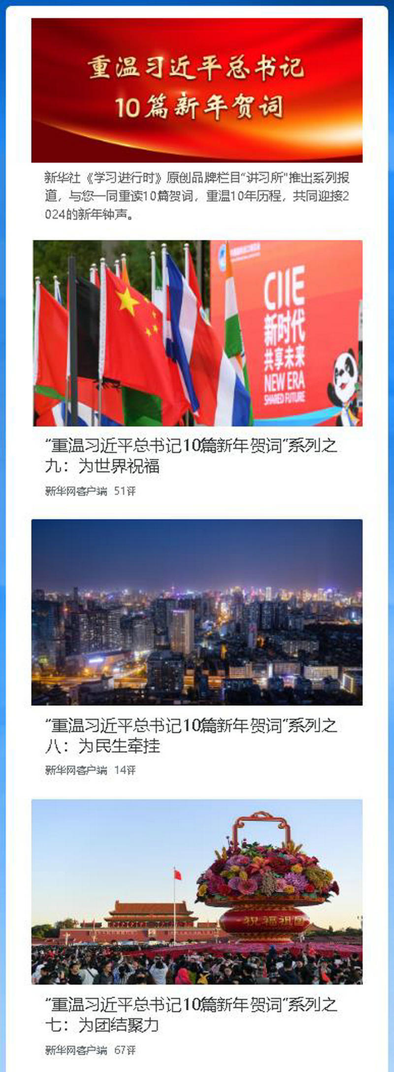 新華社《學習進行時》原創品牌欄目“講習所”推出系列報道,與您一同重讀10篇賀詞,重溫10年歷程,共同迎接2024的新年鐘聲。