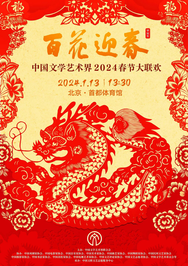 新華社北京1月13日電(記者王思北、高蕾)“百花迎春——中國文學藝術界2024春節大聯歡”13日在北京舉行。本次大聯歡以“龍騰萬里 百花迎春”為主題,老中青藝術家同臺獻禮,各藝術門類的精品力作匯聚一堂,展現文聯文藝工作新氣象新作為。