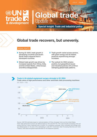 新華社日內瓦7月3日電(記者 陳斌杰)聯合國貿易和發展會議(貿發會議)2日發布的報告顯示,2024年第一季度全球貿易趨勢轉好,貨物貿易額環比增長約1%,服務貿易額環比增長約1.5%。