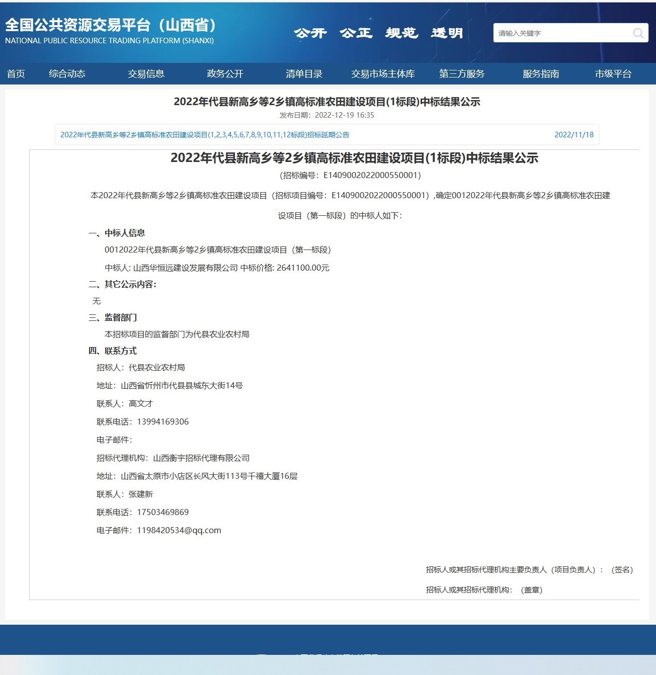 2022年代縣新高鄉等2鄉鎮高標準農田建設項目(1標段)