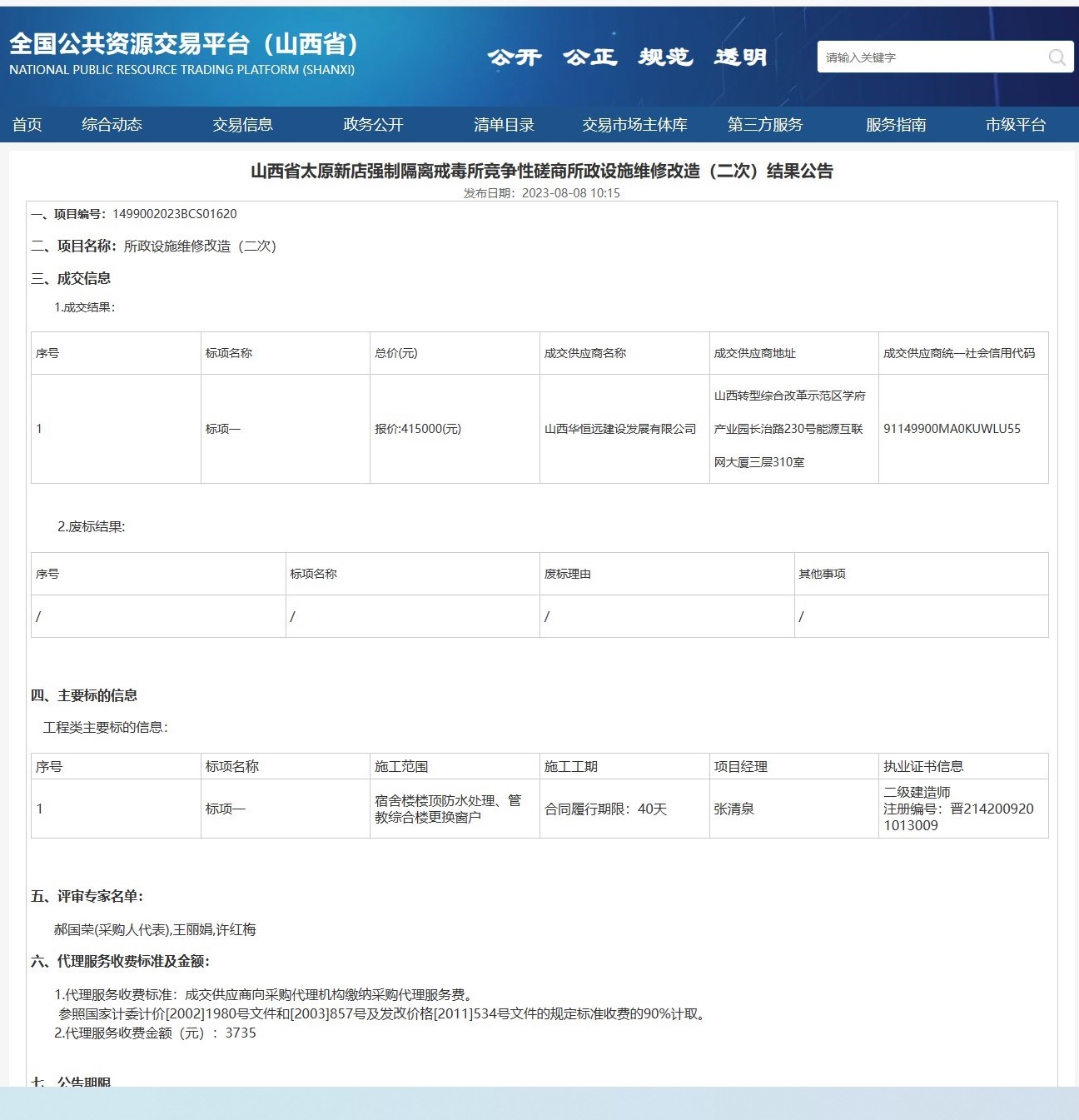 山西省太原新店強制隔離戒毒所競爭性磋商所政設施維修改造(二次)