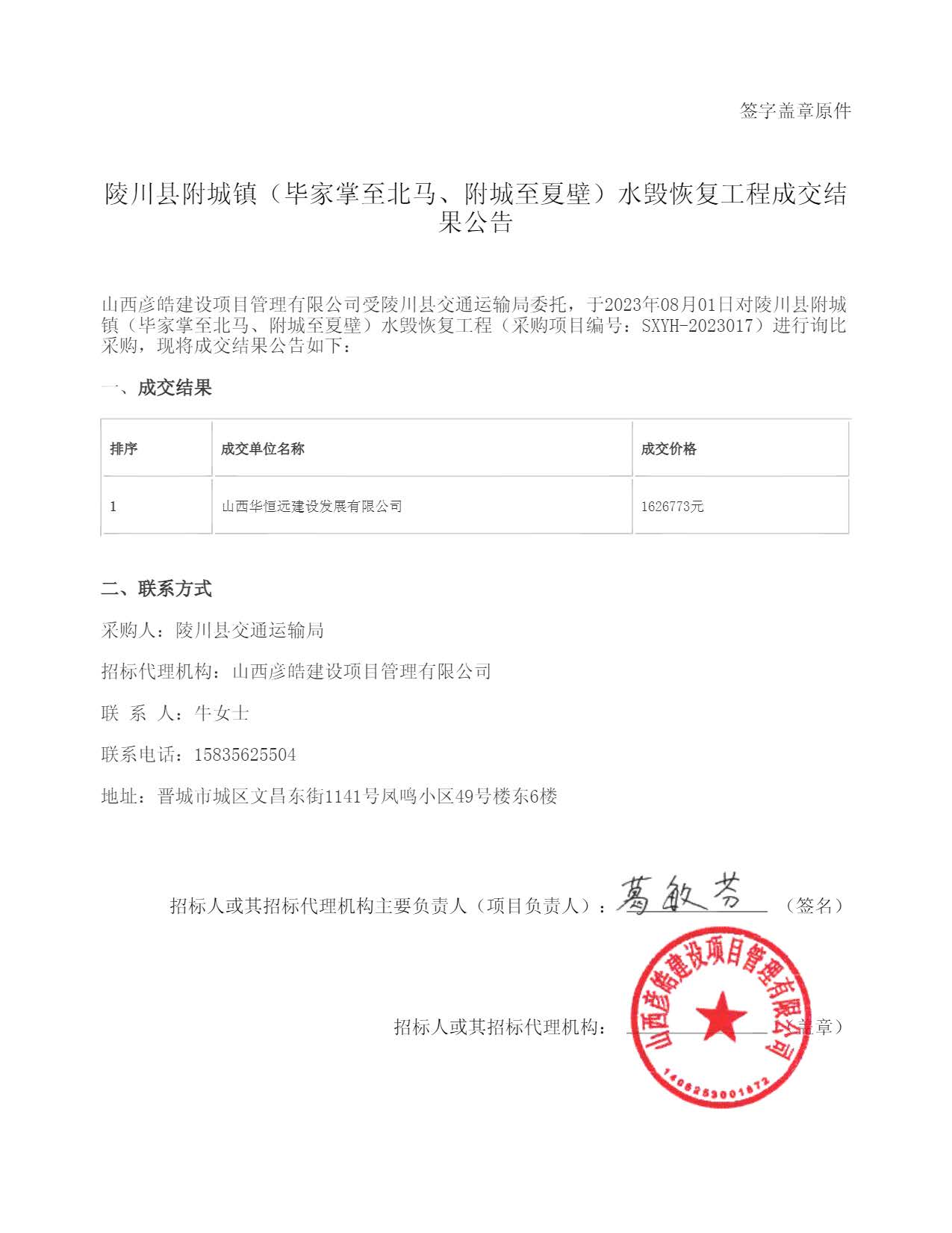 陵川縣附城鎮(畢家掌至北馬、附城至夏壁)水毀恢復工程