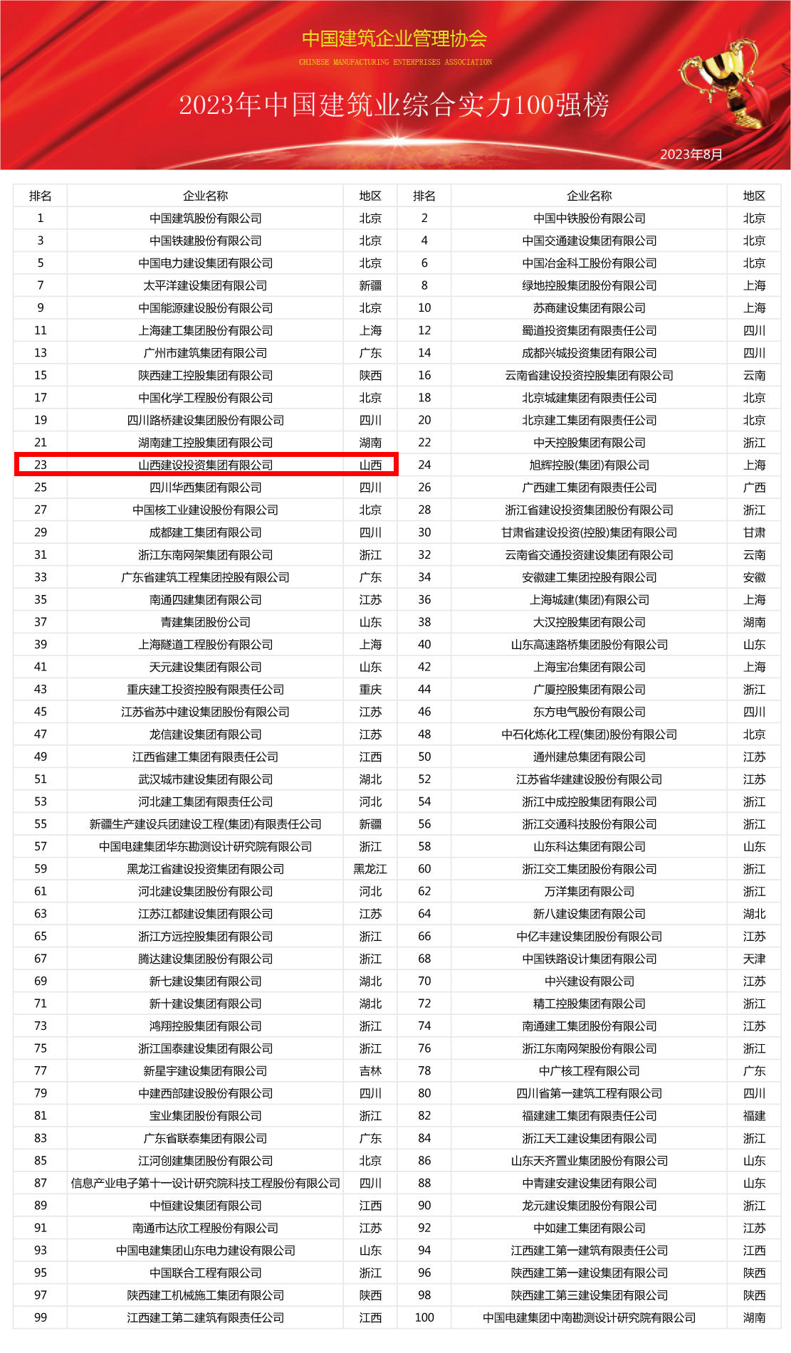 展望未來,相信在這100強(qiáng)企業(yè)的引領(lǐng)下,中國建筑業(yè)將繼續(xù)秉持創(chuàng)新、協(xié)調(diào)、綠色、開放、共享的發(fā)展理念,不斷提升自身綜合實(shí)力。以匠心鑄就精品工程,為國家建設(shè)和人民的幸福生活添磚加瓦,在實(shí)現(xiàn)中華民族偉大復(fù)興的壯麗征程中書寫更加輝煌燦爛的篇章。