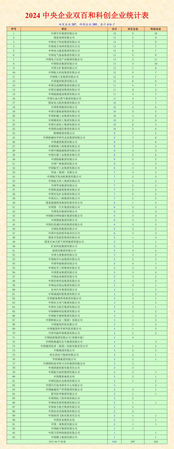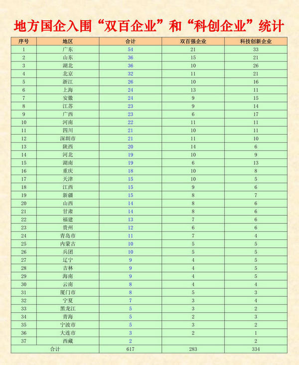 國務院國資委公布了新一期中央企業和地方國企雙百強和科技創新企業名錄,共計1233家。其中:雙百570家,科創663家。