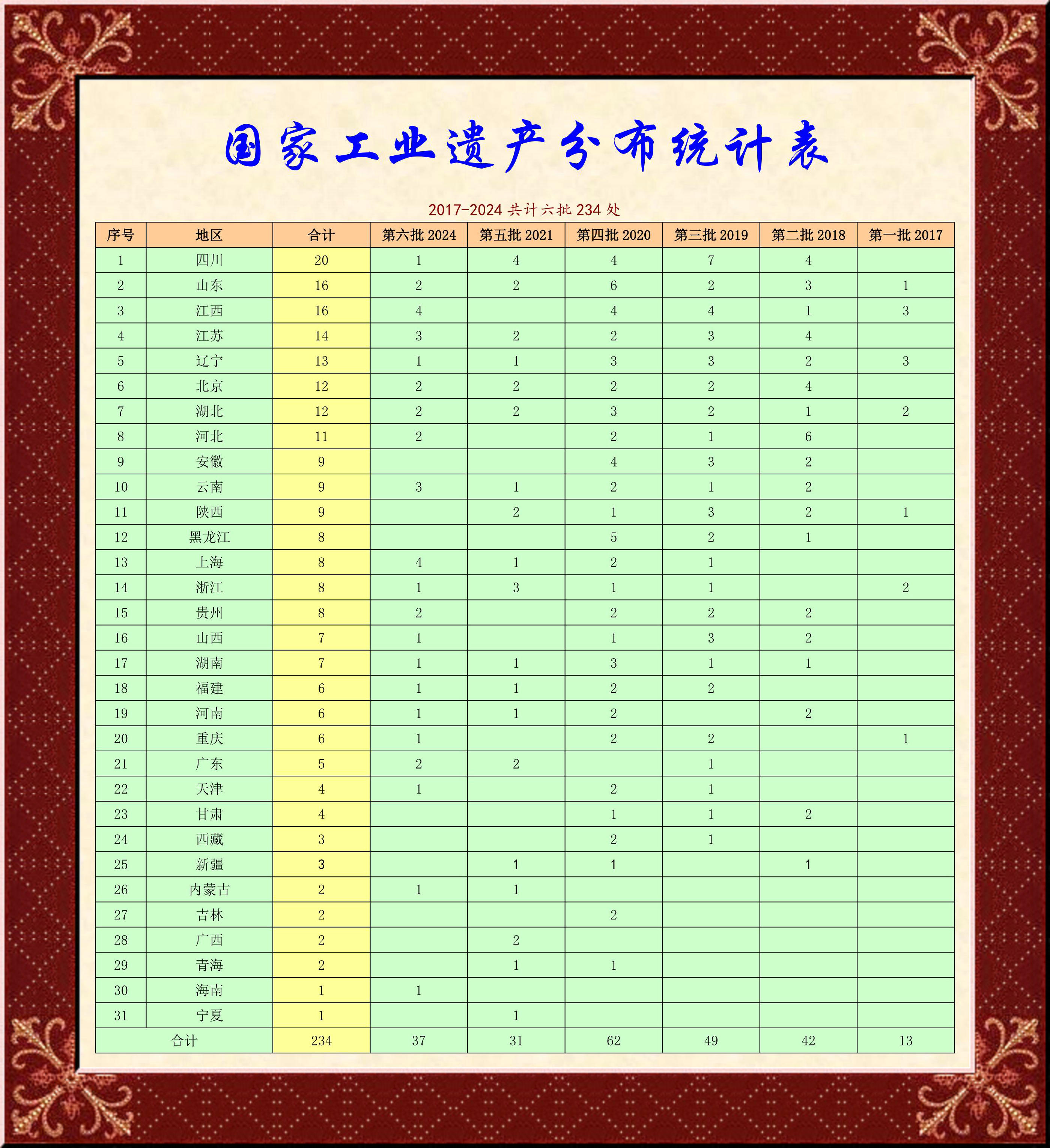 根據(jù)《國家工業(yè)遺產(chǎn)管理辦法》(工信部政法〔2023〕24號)和《工業(yè)和信息化部辦公廳關(guān)于組織開展第六批國家工業(yè)遺產(chǎn)認定和第一批、第二批復核工作的通知》(工信廳政法函〔2023〕359號),經(jīng)自主申報、地方工業(yè)和信息化主管部門與中央企業(yè)推薦、形式審查、專家評審、現(xiàn)場核查及社會公示等程序,確定了第六批國家工業(yè)遺產(chǎn)和通過復核的第一批、第二批國家工業(yè)遺產(chǎn)名單,現(xiàn)予以公布。