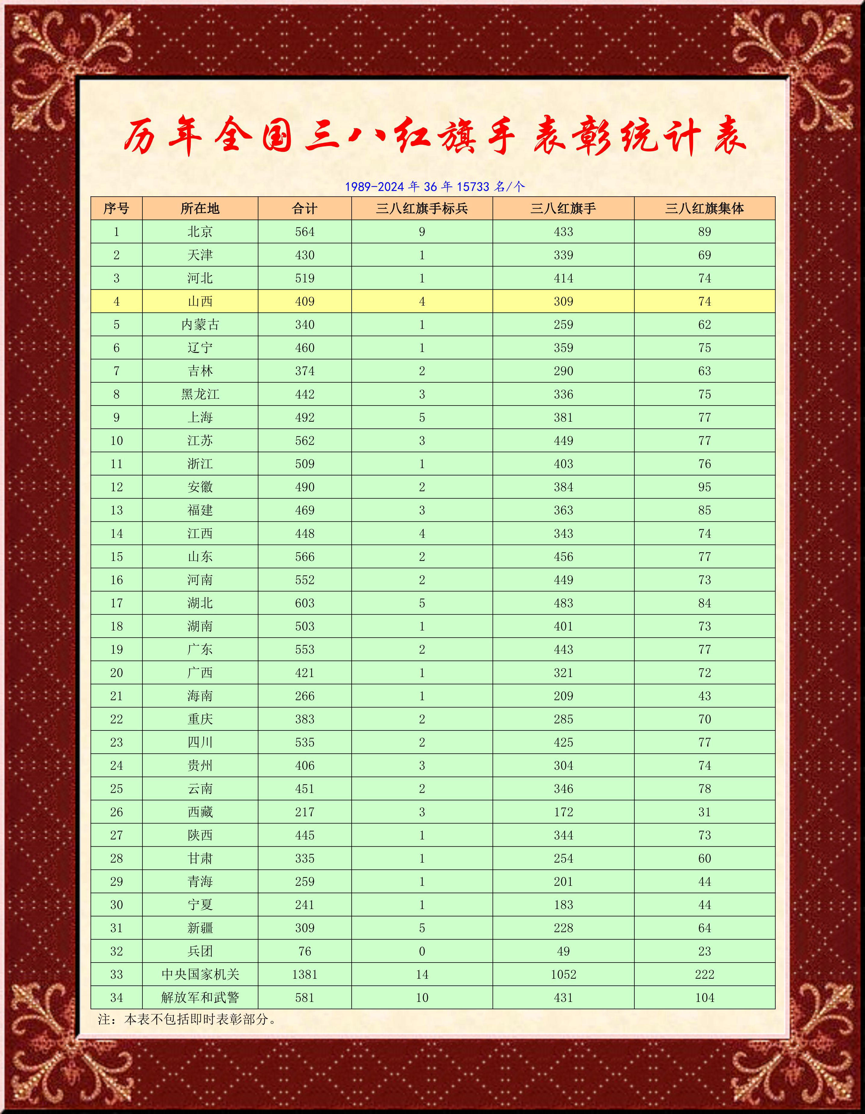 【行業資料】1989—2024全國三八紅旗手標兵、全國三八紅旗手、全國三八紅旗集體名單