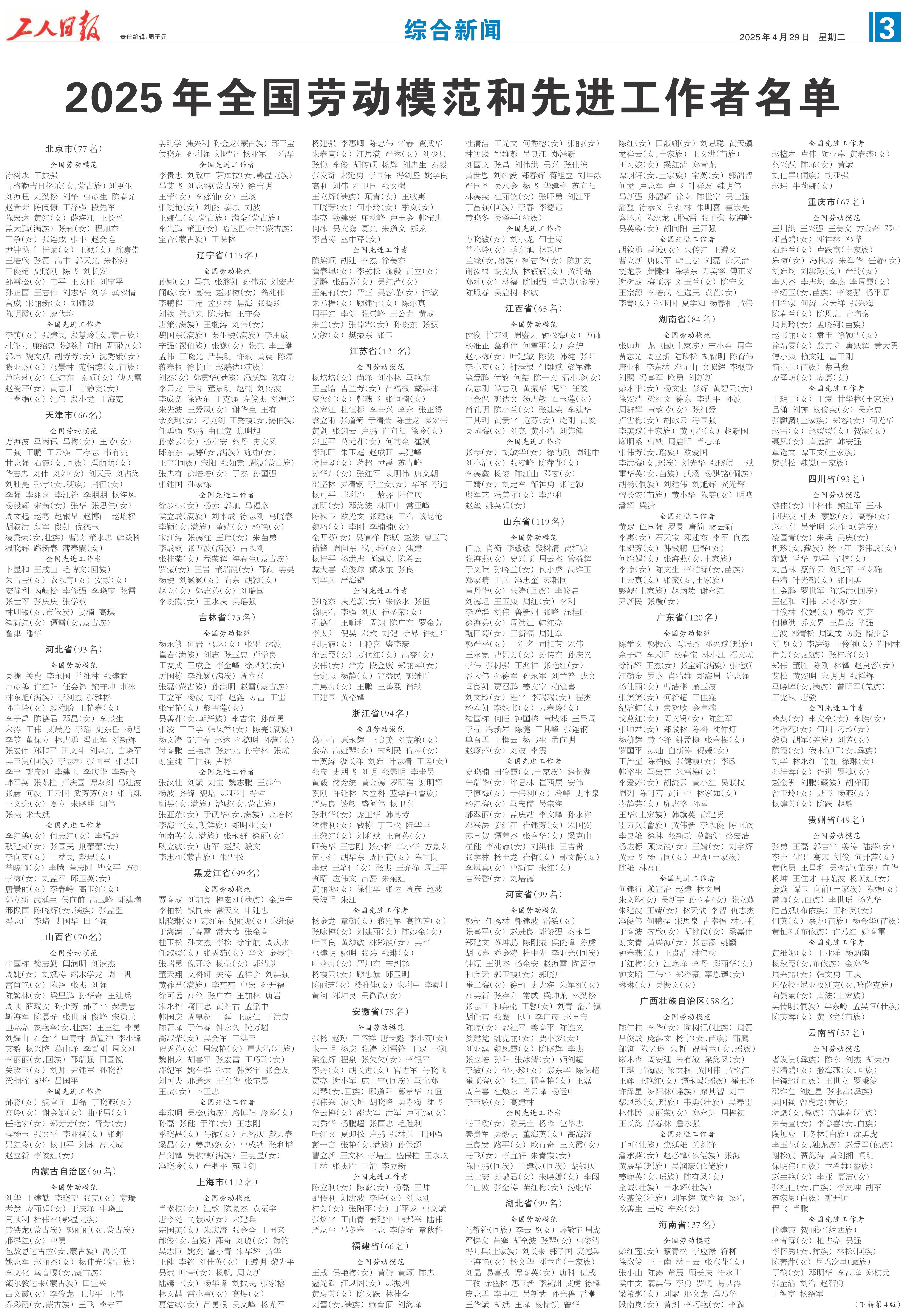1995年4月29日,國務院在北京人民大會堂召開全國勞動模范和先進工作者表彰大會。江澤民、李鵬、喬石、李瑞環、朱镕基、劉華清、胡錦濤等黨和國家領導人出席大會,江澤民代表黨中央、國務院發表重要講話。此次大會,國務院授予全國勞動模范稱號2157人,授予全國先進工作者稱號716人。