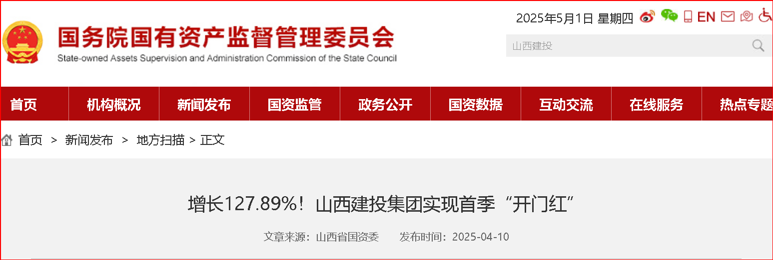 37 增長127.89%!山西建投集團實現(xiàn)首季“開門紅” www.sasac.gov.cn/n2588025...2025-04-10