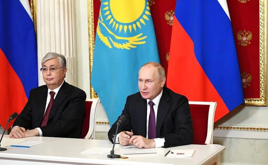 哈薩克總統托卡耶夫(左)和俄羅斯總統普京 克里姆林宮官網