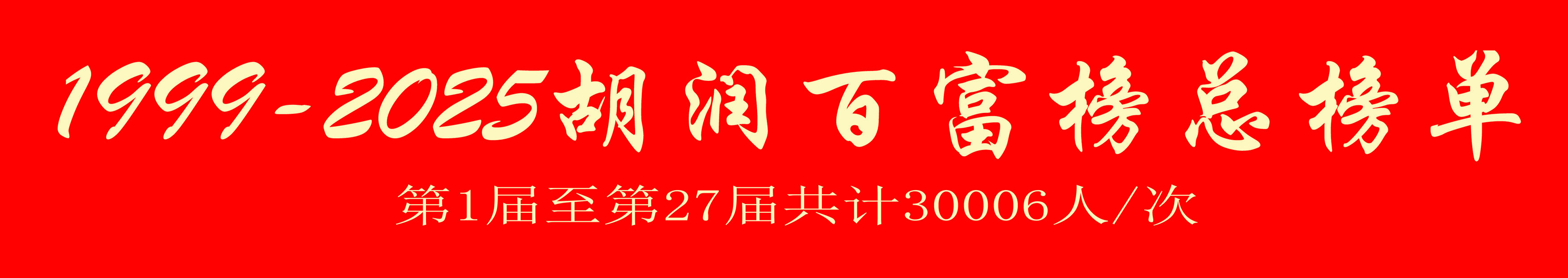 10月28日,胡潤研究院發布《2025衡昌燒坊·胡潤百富榜》(HENGCHANG SHAOFANG · Hurun China Rich List 2025)。今年是胡潤研究院自1999年以來連續第27次發布“胡潤百富榜”,財富計算截止日期為2025年9月1日。