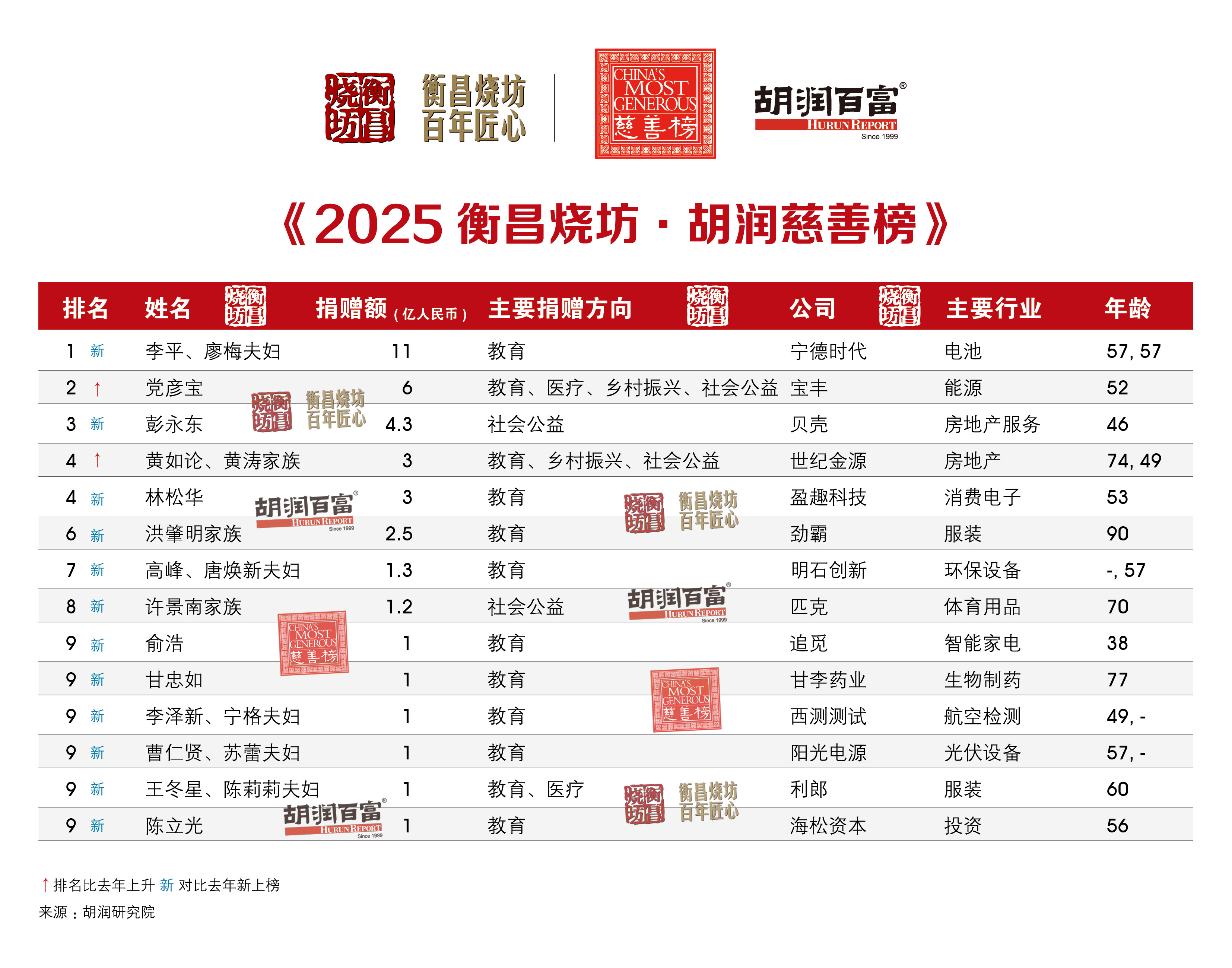 胡潤研究院發(fā)布《2025衡昌燒坊·胡潤慈善榜》