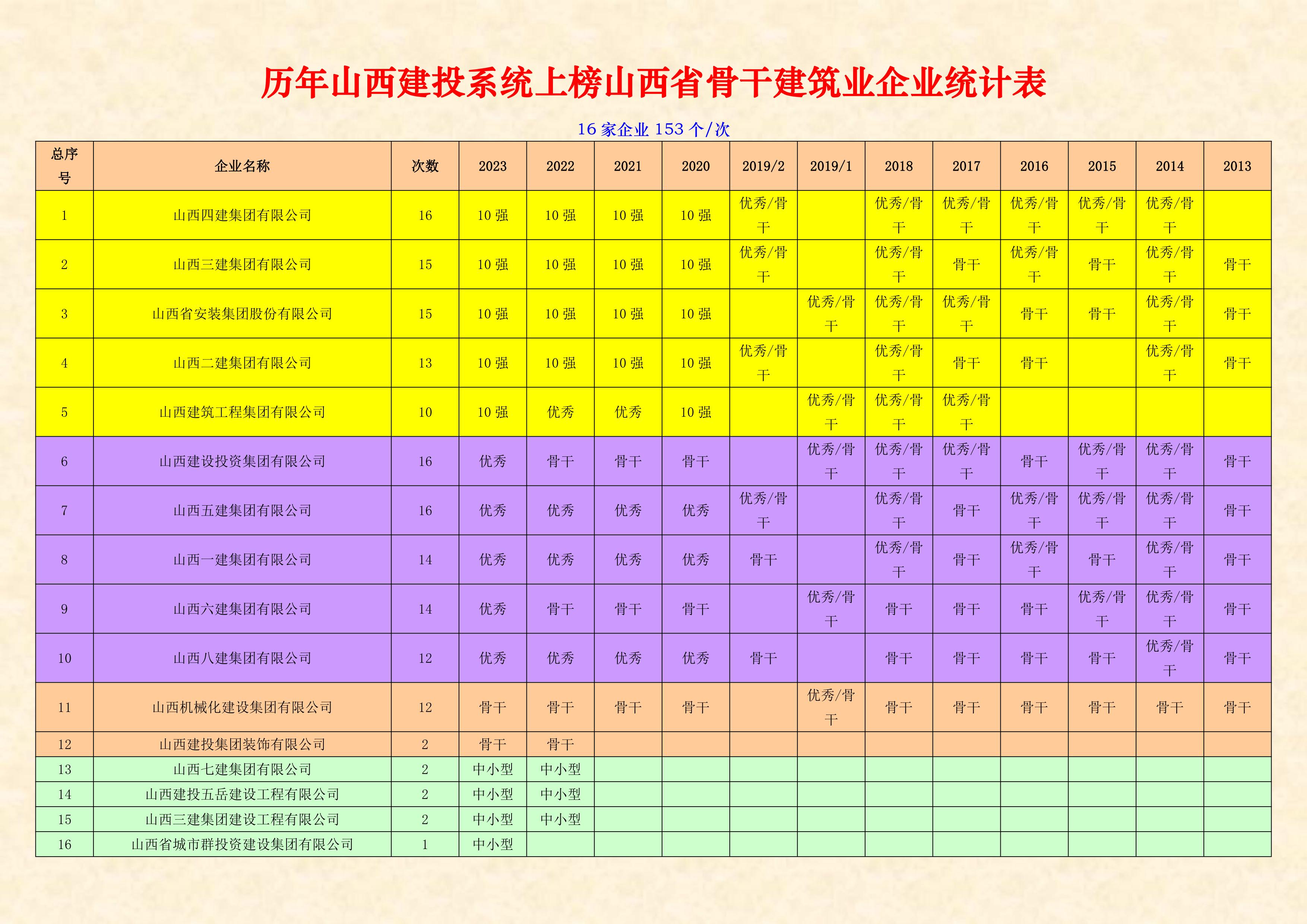 據悉,2023年的評選是按照省住房和城鄉建設廳2022年新修訂的《山西省骨干建筑業企業評選條件及量化標準》,從經濟指標、市場行為、工程質量和安全生產、科技創新和標準化及附加分5個方面統一采取百分制量化評分標準,在全省申報企業中按照綜合得分由高到低排序評選產生。