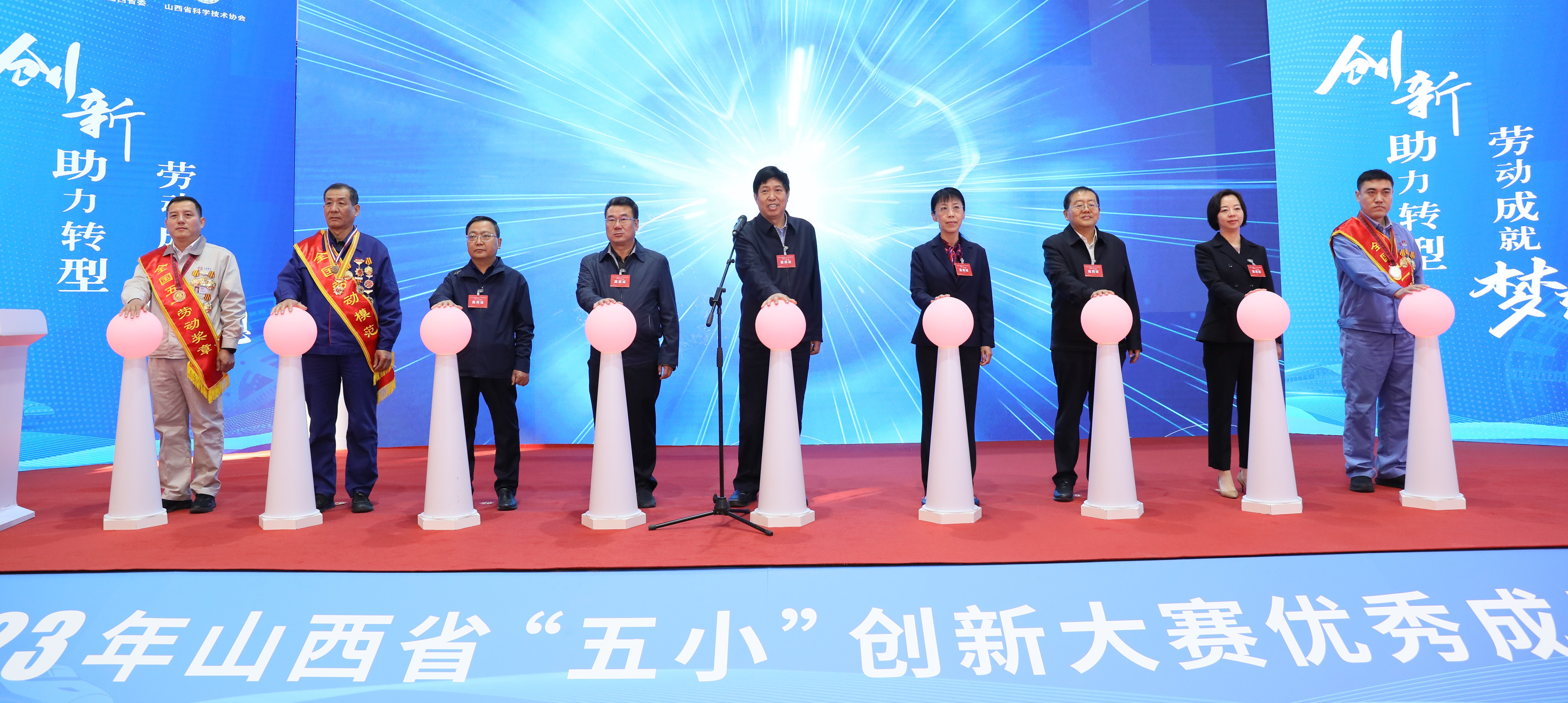 趙紅嚴(yán)代表省政府向成果展開幕表示祝賀。趙紅嚴(yán)強(qiáng)調(diào),全省各級工會、共青團(tuán)和科協(xié)要進(jìn)一步扛牢政治責(zé)任,充分發(fā)揮群團(tuán)組織優(yōu)勢,將“五小”創(chuàng)新大賽持續(xù)引向深入。要進(jìn)一步提升大賽質(zhì)量,推動大賽內(nèi)容更加豐富、方式更加新穎、載體更加多元、群眾參與熱情更加高漲、成果推廣交流更加廣泛高效、成果轉(zhuǎn)化落地更加快速順暢,切實(shí)提升大賽的影響力和美譽(yù)度。要進(jìn)一步抓好平臺打造,加快推進(jìn)工匠學(xué)院、勞模創(chuàng)新工作室、“鄉(xiāng)村E站”等創(chuàng)新平臺建設(shè),著力打造特色鮮明、社會認(rèn)可的實(shí)踐陣地,實(shí)現(xiàn)生產(chǎn)實(shí)踐、創(chuàng)新創(chuàng)造、能力提升協(xié)同并進(jìn),讓廣大職工群眾的聰明才智充分涌流、創(chuàng)造活力競相迸發(fā),凝聚起推進(jìn)中國式現(xiàn)代化山西實(shí)踐的磅礴力量。要按照省委十二屆六次全會部署和剛剛召開的全省領(lǐng)導(dǎo)干部會議精神,在省委、省政府的堅(jiān)強(qiáng)領(lǐng)導(dǎo)下,把鼓勵支持創(chuàng)新放在更加突出的位置,進(jìn)一步激發(fā)全社會的創(chuàng)新熱情,一張藍(lán)圖繪到底,一年接著一年干,團(tuán)結(jié)引領(lǐng)廣大職工群眾為我省加快高質(zhì)量發(fā)展不斷作出新貢獻(xiàn)、展現(xiàn)新作為。