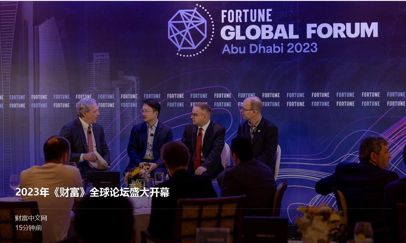 2023年《財(cái)富》全球論壇于11月27日在阿聯(lián)酋首都阿布扎比盛大開幕。該論壇為期三天,由阿布扎比經(jīng)濟(jì)發(fā)展部(ADDED)協(xié)辦。這是《財(cái)富》全球論壇首次在中東和北非地區(qū)舉辦。這場群賢畢至的盛會(huì)匯聚了全球最大跨國公司的首席執(zhí)行官、商界領(lǐng)袖,以及重量級政策制定者和投資者。