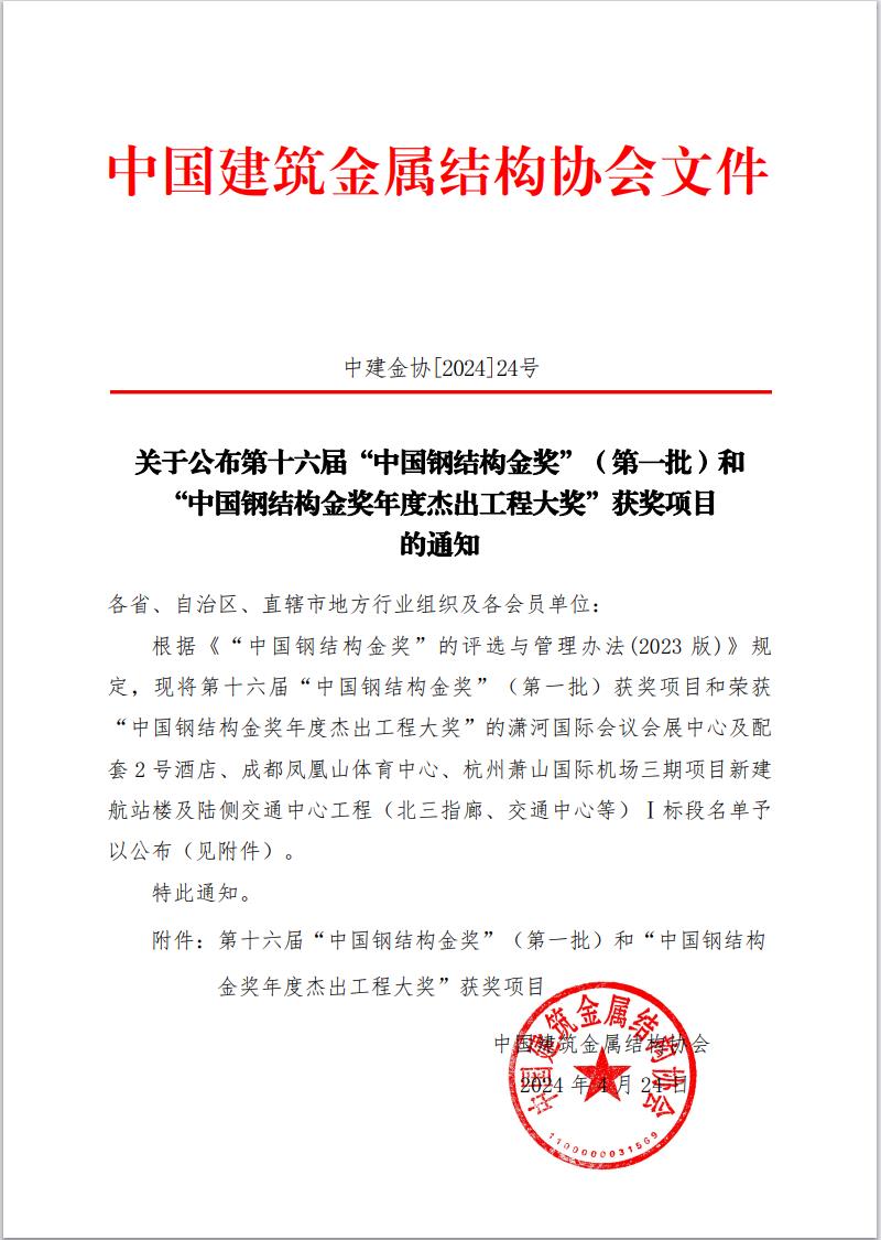 “中國鋼結(jié)構(gòu)金獎年度杰出工程大獎”是由住建部委托中國建筑金屬結(jié)構(gòu)協(xié)會設(shè)立的鋼結(jié)構(gòu)行業(yè)最高工程大獎,是從當(dāng)年獲得“中國鋼結(jié)構(gòu)金獎”的項目中優(yōu)中選優(yōu),是鋼結(jié)構(gòu)工程領(lǐng)域唯一的國家優(yōu)質(zhì)工程獎,代表了我國鋼結(jié)構(gòu)行業(yè)工程質(zhì)量的領(lǐng)先水平,獲獎的項目對推動鋼結(jié)構(gòu)行業(yè)工程建設(shè)高質(zhì)量發(fā)展有著積極的引領(lǐng)示范作用。