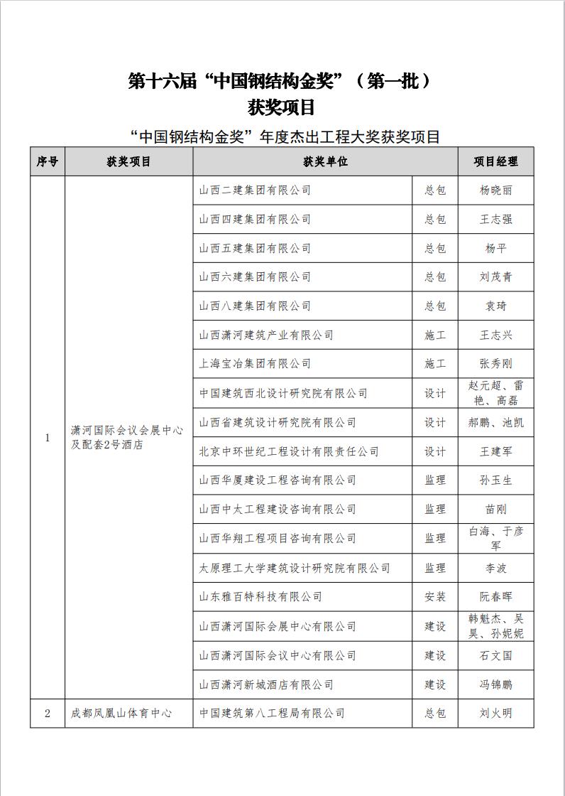 本報訊 近日,中國建筑金屬結(jié)構(gòu)協(xié)會公布了第十六屆“中國鋼結(jié)構(gòu)金獎”(第一批)和“中國鋼結(jié)構(gòu)金獎年度杰出工程大獎”獲獎項目名單,由山西建投瀟河公司參建的山西·瀟河新城“瀟河國際會議會展中心及配套2號酒店項目”經(jīng)過層層選拔,斬獲“中國鋼結(jié)構(gòu)金獎年度杰出工程大獎”。