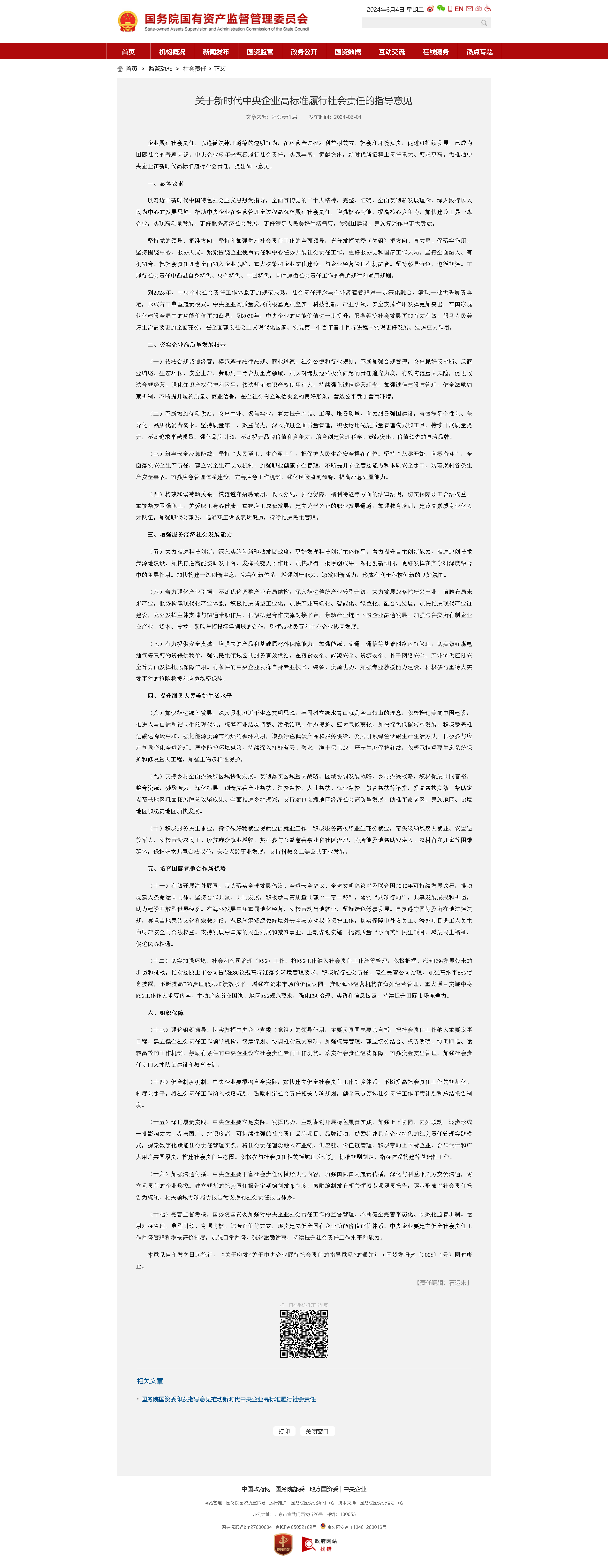 以習(xí)近平新時代中國特色社會主義思想為指導(dǎo),全面貫徹黨的二十大精神,完整、準(zhǔn)確、全面貫徹新發(fā)展理念,深入踐行以人民為中心的發(fā)展思想,推動中央企業(yè)在經(jīng)營管理全過程高標(biāo)準(zhǔn)履行社會責(zé)任,增強(qiáng)核心功能、提高核心競爭力,加快建設(shè)世界一流企業(yè),實(shí)現(xiàn)高質(zhì)量發(fā)展,更好服務(wù)經(jīng)濟(jì)社會發(fā)展,更好滿足人民美好生活需要,為強(qiáng)國建設(shè)、民族復(fù)興作出更大貢獻(xiàn)。