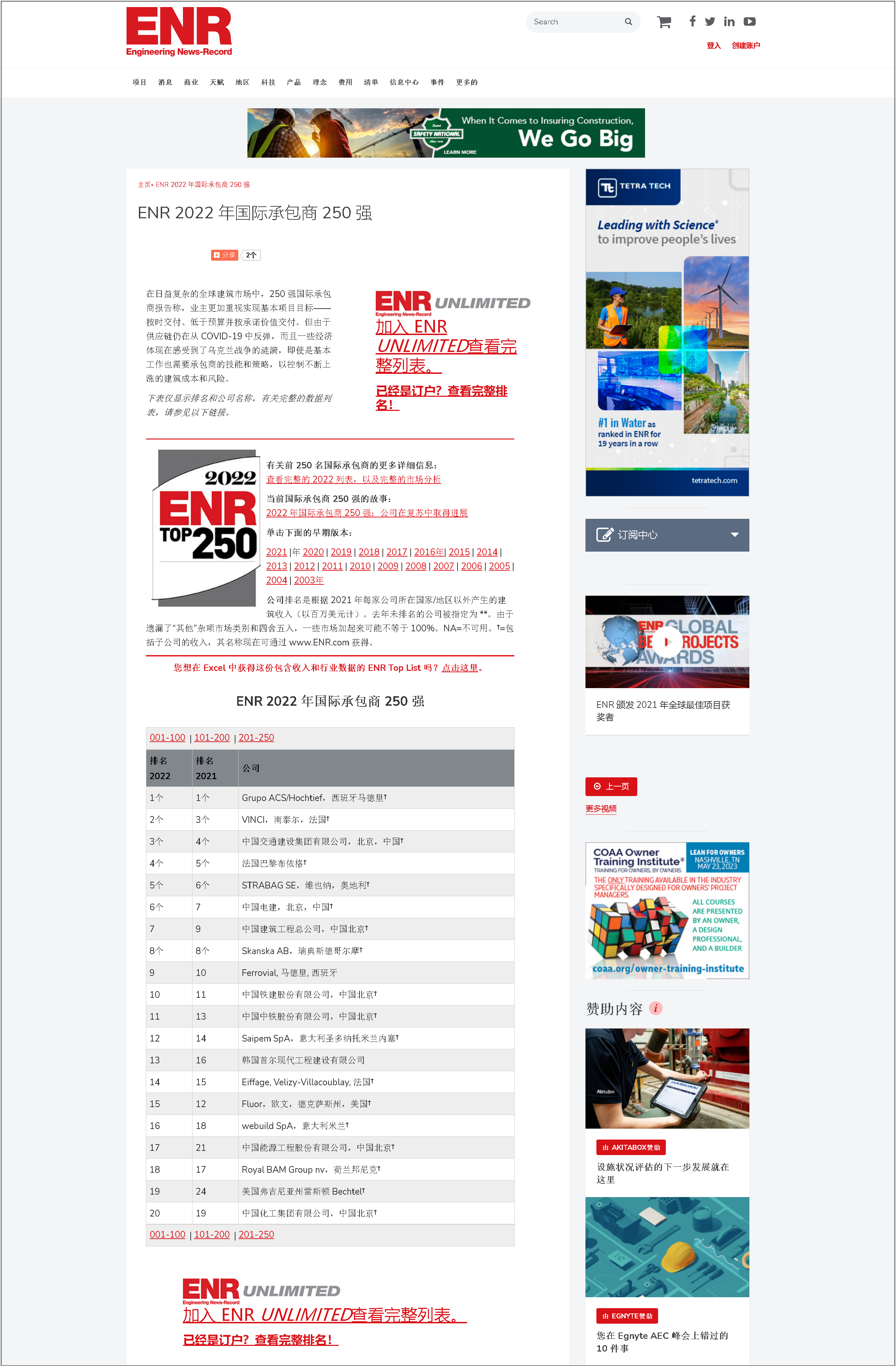 每年 8 月發(fā)布的國際承包商 250 強榜單根據(jù)總建筑承包出口收入對全球 250 家最大的公共和私營建筑承包商進行排名,這些出口收入來自每個公司各自本國以外的項目。