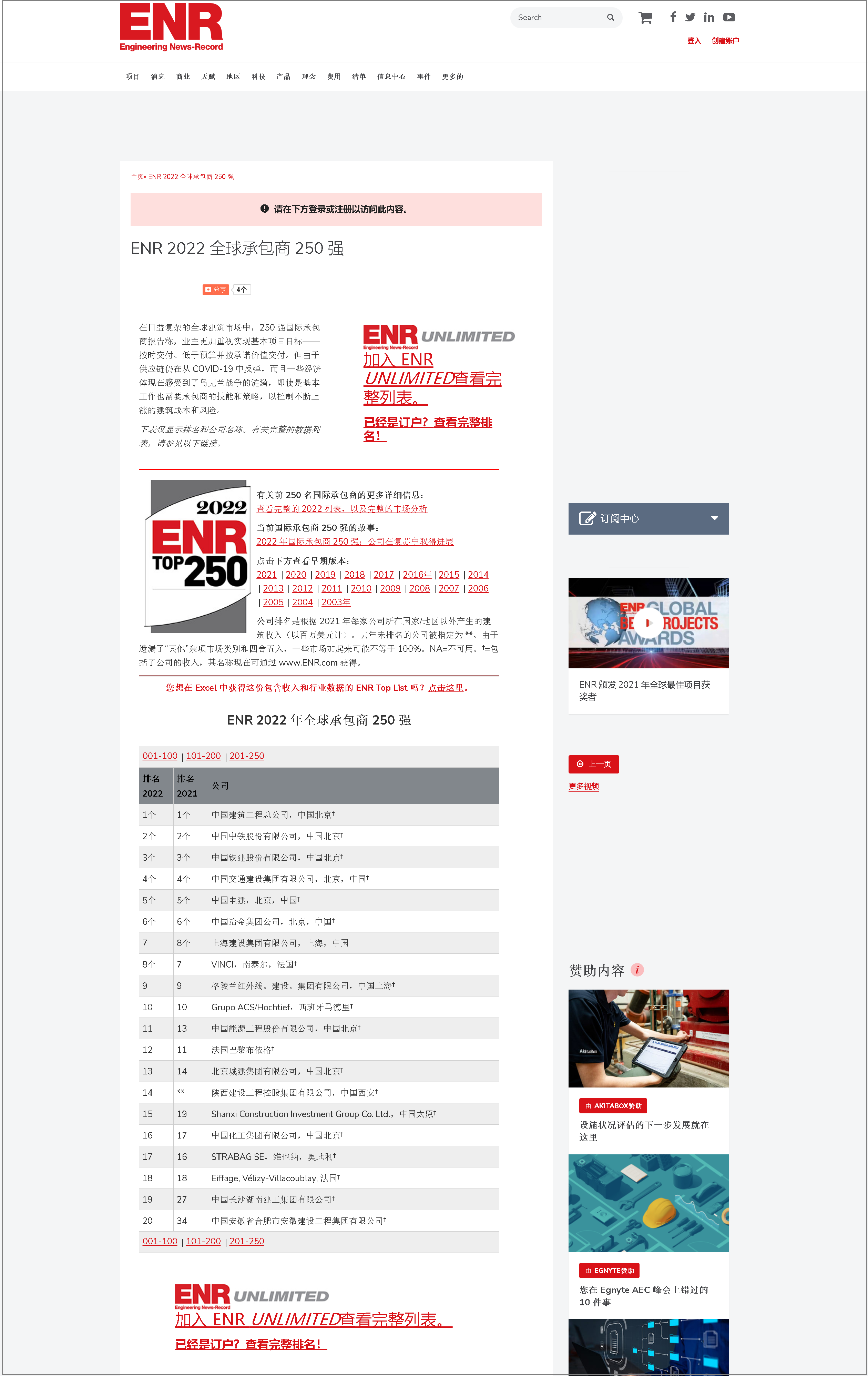 《工程新聞紀錄》,簡稱ENR,是一份美國的周刊,該刊物主要關注建筑工程領域,致力提供全球性的工程新聞、評論意見、分析數(shù)據(jù)等,ENR創(chuàng)刊于1874年,《工程新聞紀錄》(英文:The Engineering News-Record),由麥格勞·希爾集團控股。ENR每年固定出版美國及全球工程領域相關公司的規(guī)模排名,其中尤以世界承包商225強(ENR Global 225)、國際承包商225強(ENR International 225)兩項排名為全球業(yè)內人士熟知,擁有較高權威性和知名度。