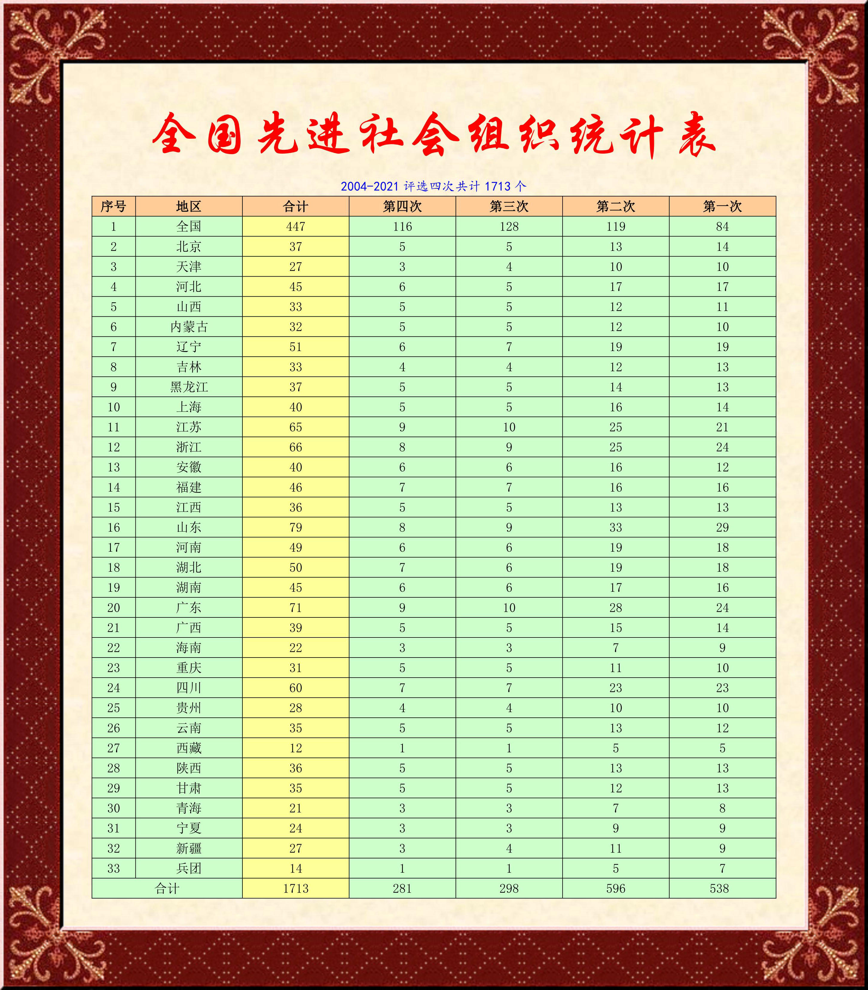 民政部表彰500多家全國先進民間組織(第一次2004年)