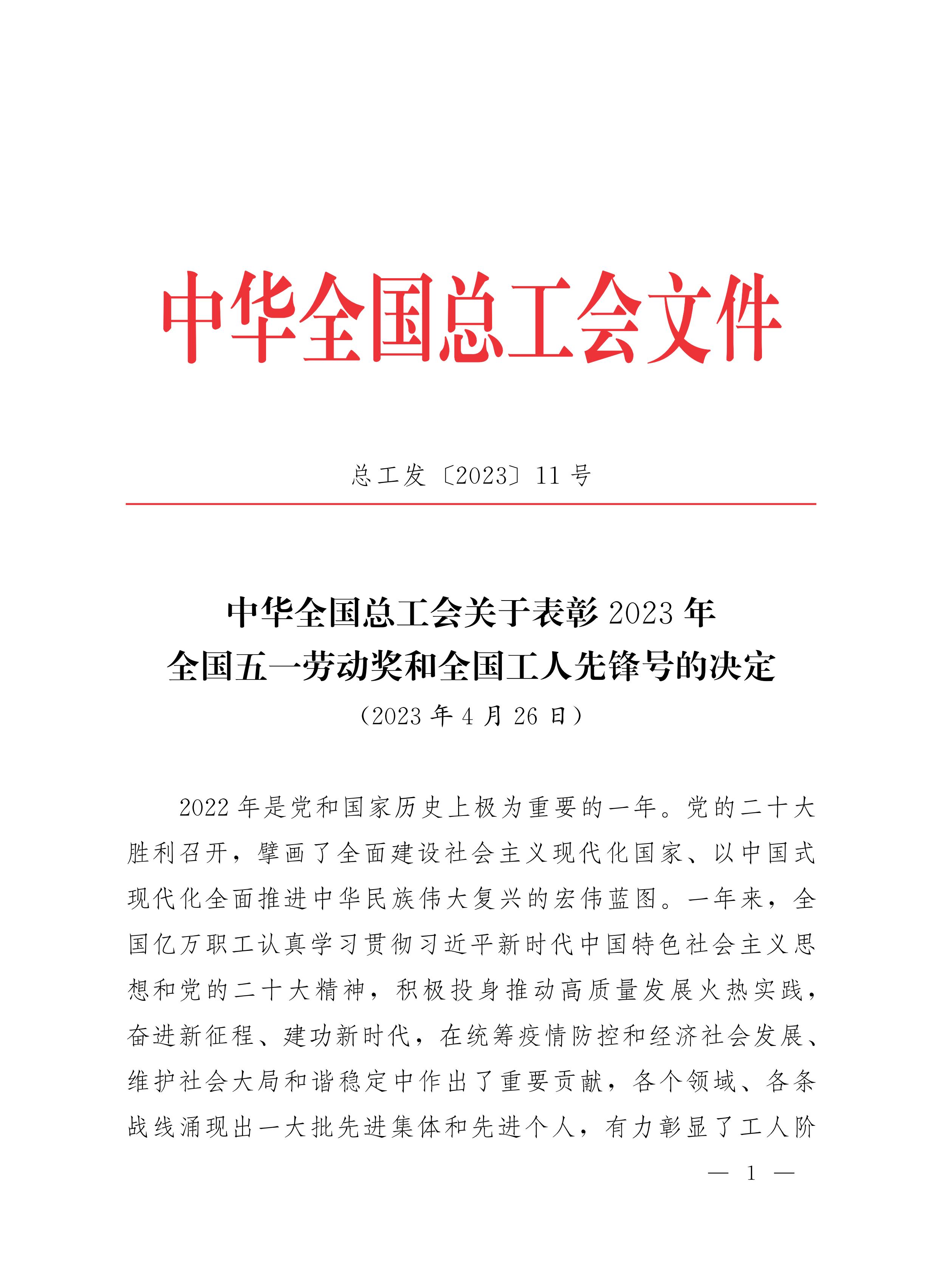 【行業資料】2023 年全國五一勞動獎和全國工人先鋒號名單