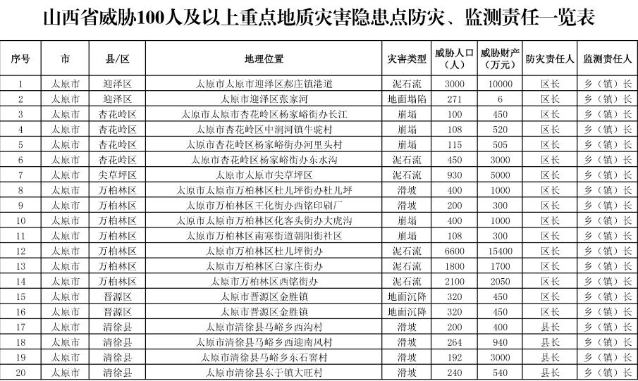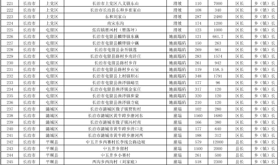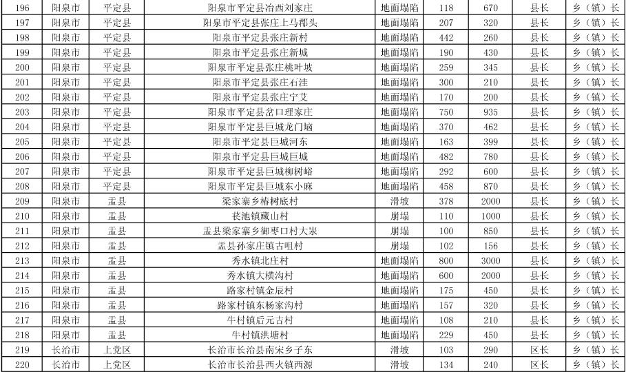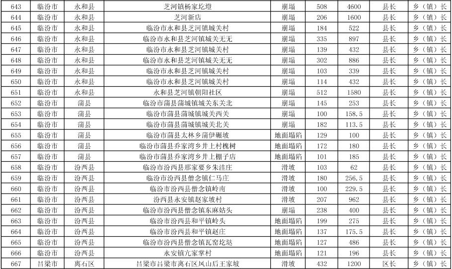 《方案》要求,強化治理搬遷,消除安全隱患。實施中央和省級資金安排9處地質(zhì)災(zāi)害治理工程項目。其中,河津市、夏縣、石樓縣、臨縣、永和縣、鄉(xiāng)寧縣、榆社縣各1處,武鄉(xiāng)縣2處。《方案》提出,要把縣級配套資金落實到位,加快項目施工進度,確保今年全部竣工;要推進中央和省級資金安排3397戶農(nóng)村地質(zhì)災(zāi)害避險搬遷工作,落實市縣配套資金,明確時間節(jié)點進度,確保年底全面開工,2024年竣工入住。