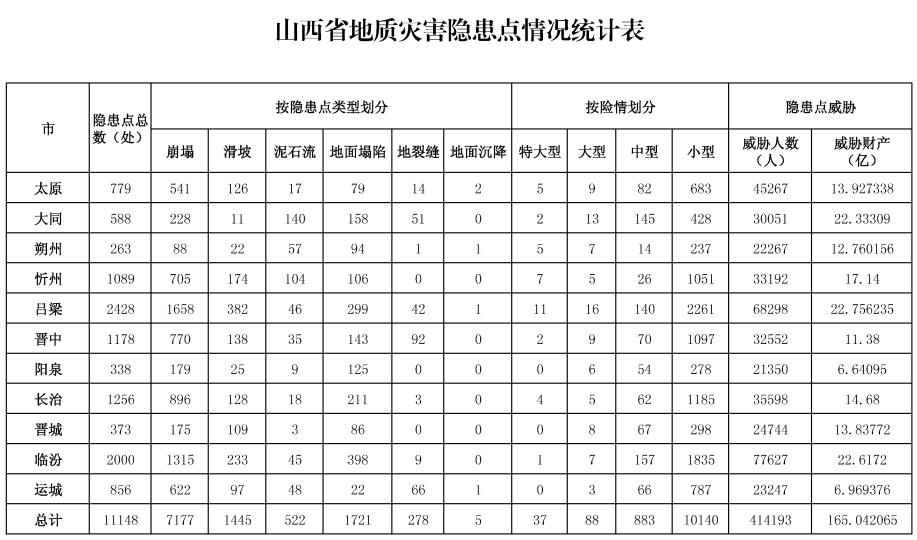 本報太原6月2日訊(記者王佳麗)省自然資源廳6月1日印發(fā)的《山西省2023年度地質(zhì)災(zāi)害防治方案》(以下簡稱《方案》),劃定了晉西黃土高原、太原西山—汾西—霍州—鄉(xiāng)寧—河津礦區(qū)、太原東山—陽泉—潞安—晉城—沁水礦區(qū)、嵐縣—靜樂礦區(qū)共4個崩塌、滑坡地質(zhì)災(zāi)害重點防治區(qū)。