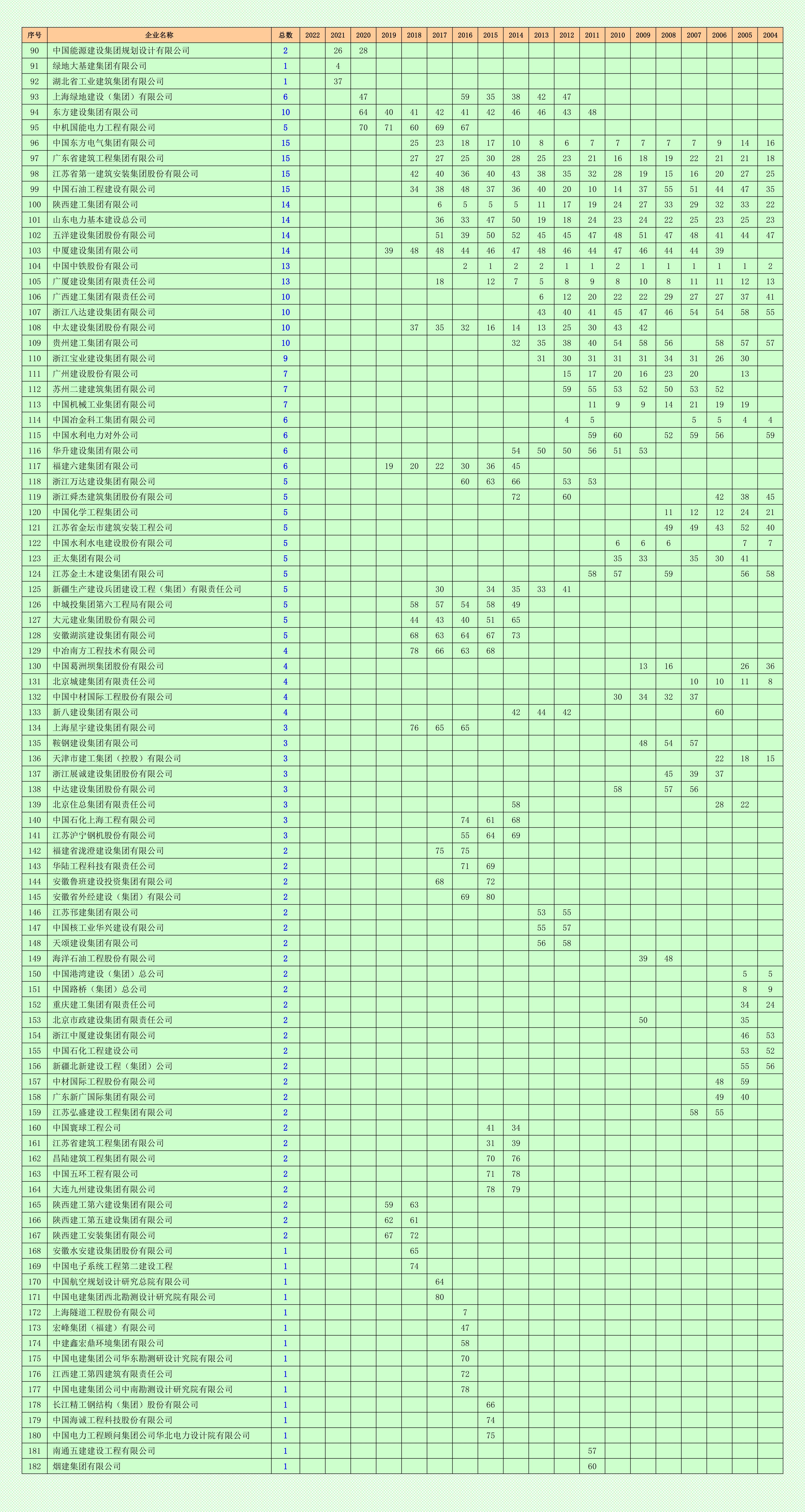 2004-2022ENR/建筑時報中國承包商 80 強統計表