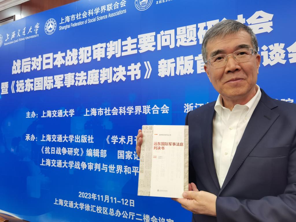 新版《遠東國際軍事法庭判決書》由上海交通大學(xué)出版社出版。東京審判中國法官梅汝璈之女、法學(xué)博士梅小侃擔(dān)任此書審校。(記者吳宇)