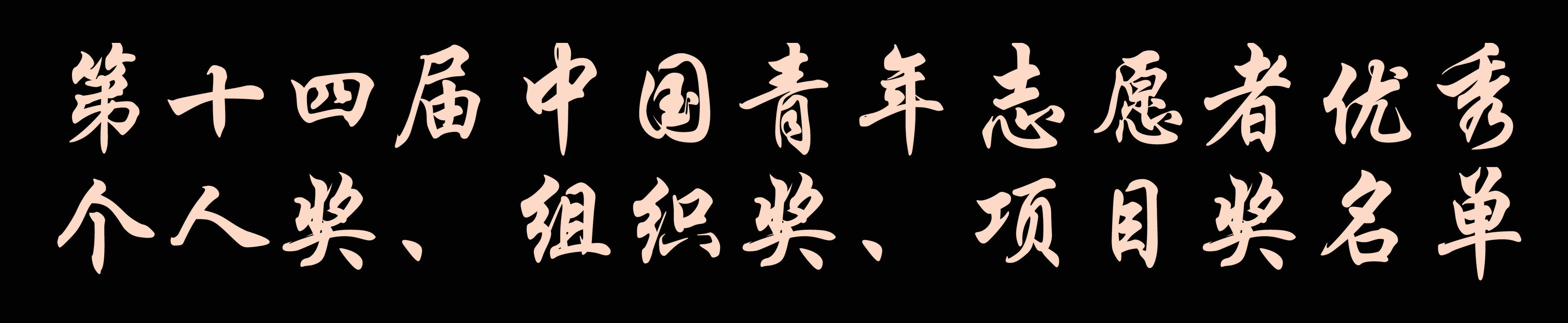 為集中展示新時代新征程青年志愿者忠誠于黨、奉獻(xiàn)祖國、服務(wù)人民的精神風(fēng)貌,激勵和引導(dǎo)廣大青年積極踐行和弘揚社會主義核心價值觀,為強國建設(shè)、民族復(fù)興偉業(yè)而奮斗,共青團(tuán)中央、中國青年志愿者協(xié)會決定,授予北京2022年冬奧會、冬殘奧會志愿者群體、杭州第19屆亞運會和第4屆亞殘運會志愿者群體、成都第31屆世界大學(xué)生夏季運動會志愿者群體、第一屆全國學(xué)生(青年)運動會志愿者群體等260名個人第十四屆“中國青年志愿者優(yōu)秀個人獎”,授予浙江大學(xué)馬蘭紅色志愿服務(wù)團(tuán)等100個組織第十四屆“中國青年志愿者優(yōu)秀組織獎”,授予扎根計劃——“三走四幫五聯(lián)動”賦能鄉(xiāng)村振興志愿服務(wù)項目等100個項目第十四屆“中國青年志愿者優(yōu)秀項目獎”。