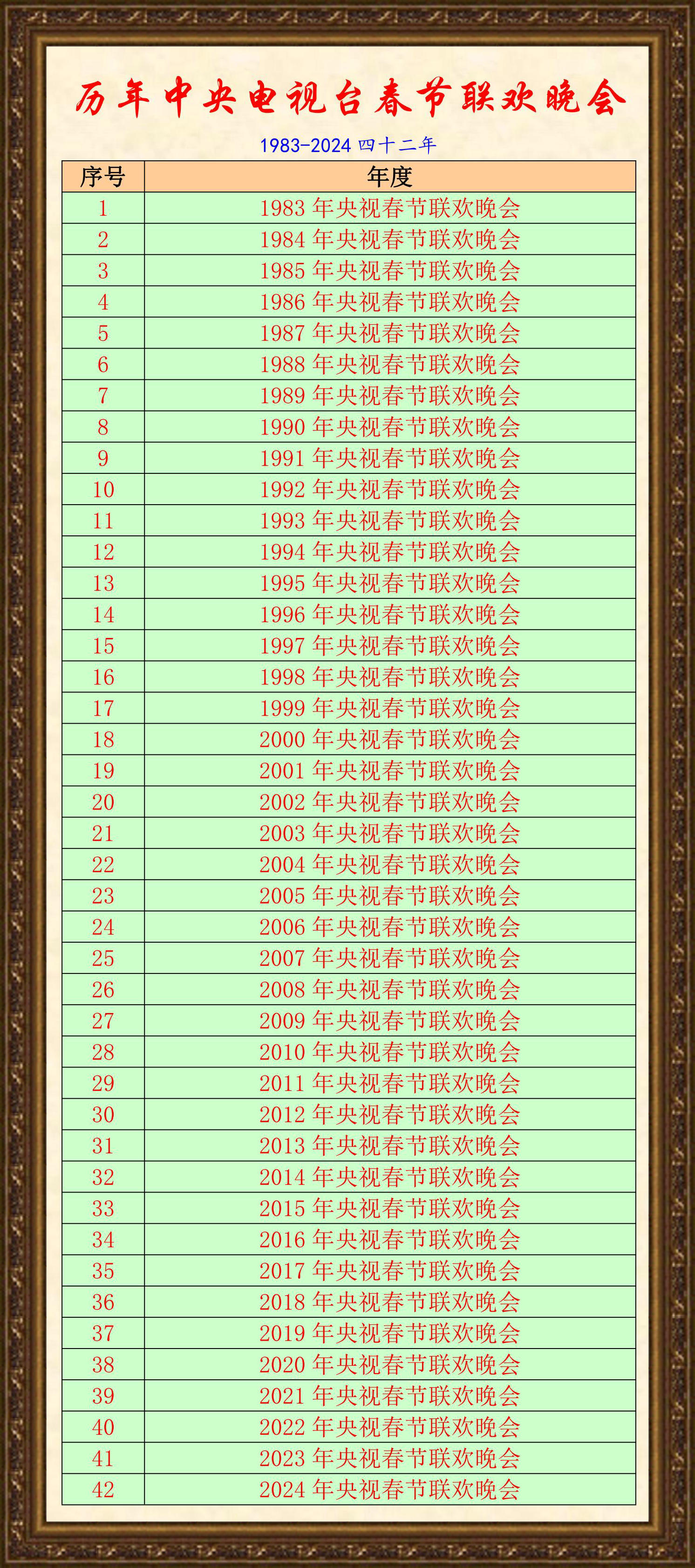 歷年中央電視臺春節(jié)聯(lián)歡晚會節(jié)目單