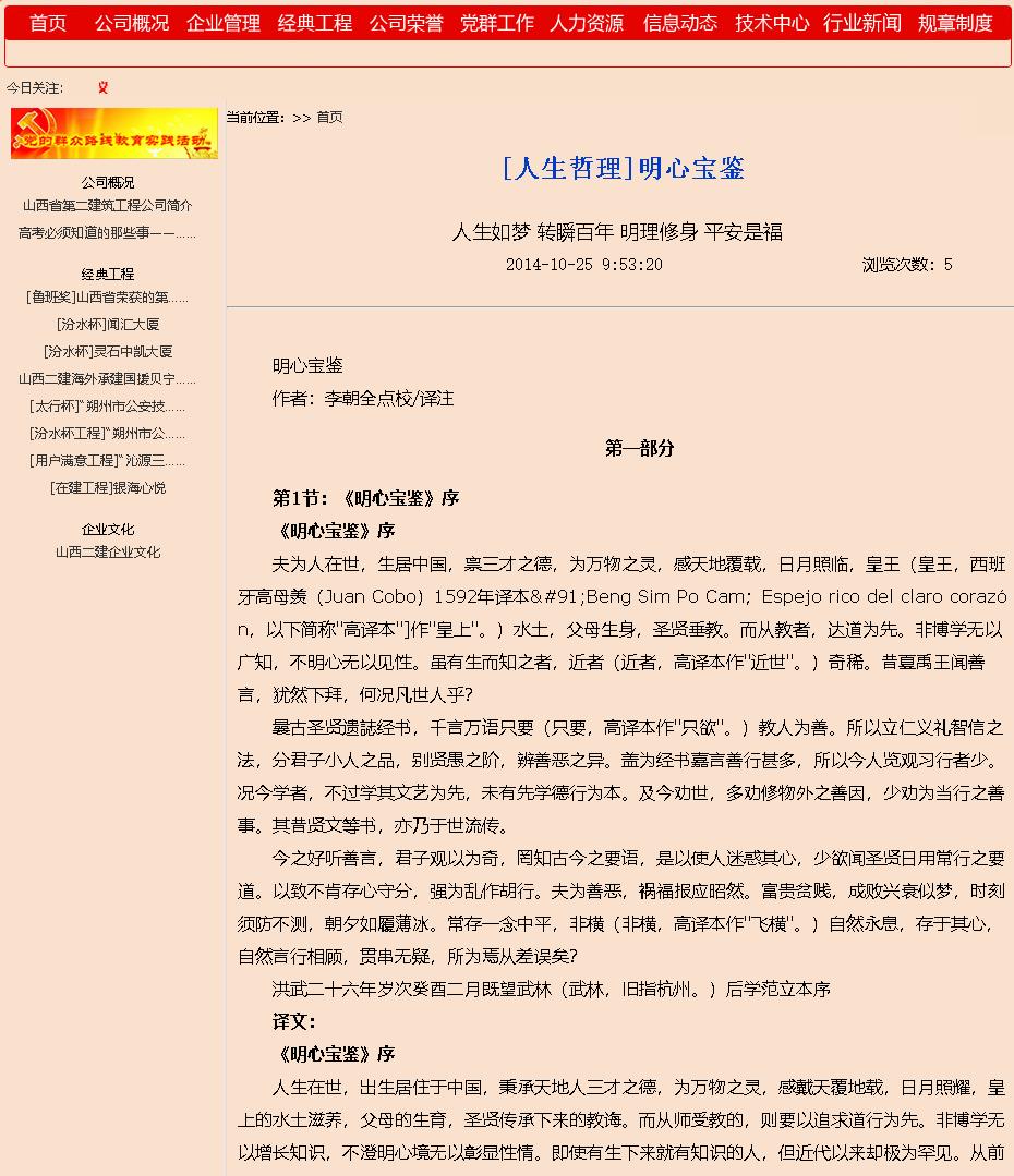 這是十年前我在山西二建舊網站發布的《[人生哲理]明心寶鑒》。今天,在華恒遠再一次貼出來,供大家學習、交流、體會、實踐、溝通。