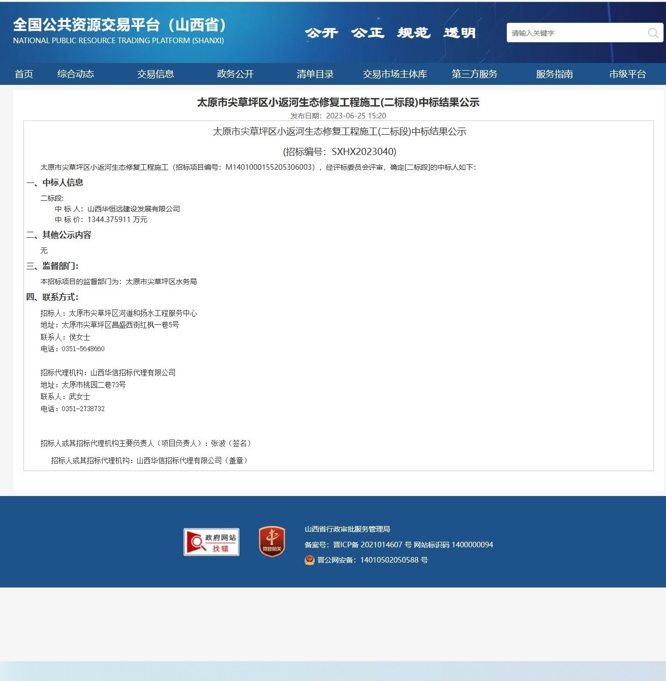 小返河生態修復工程施工(二標段)中標1344.37萬元