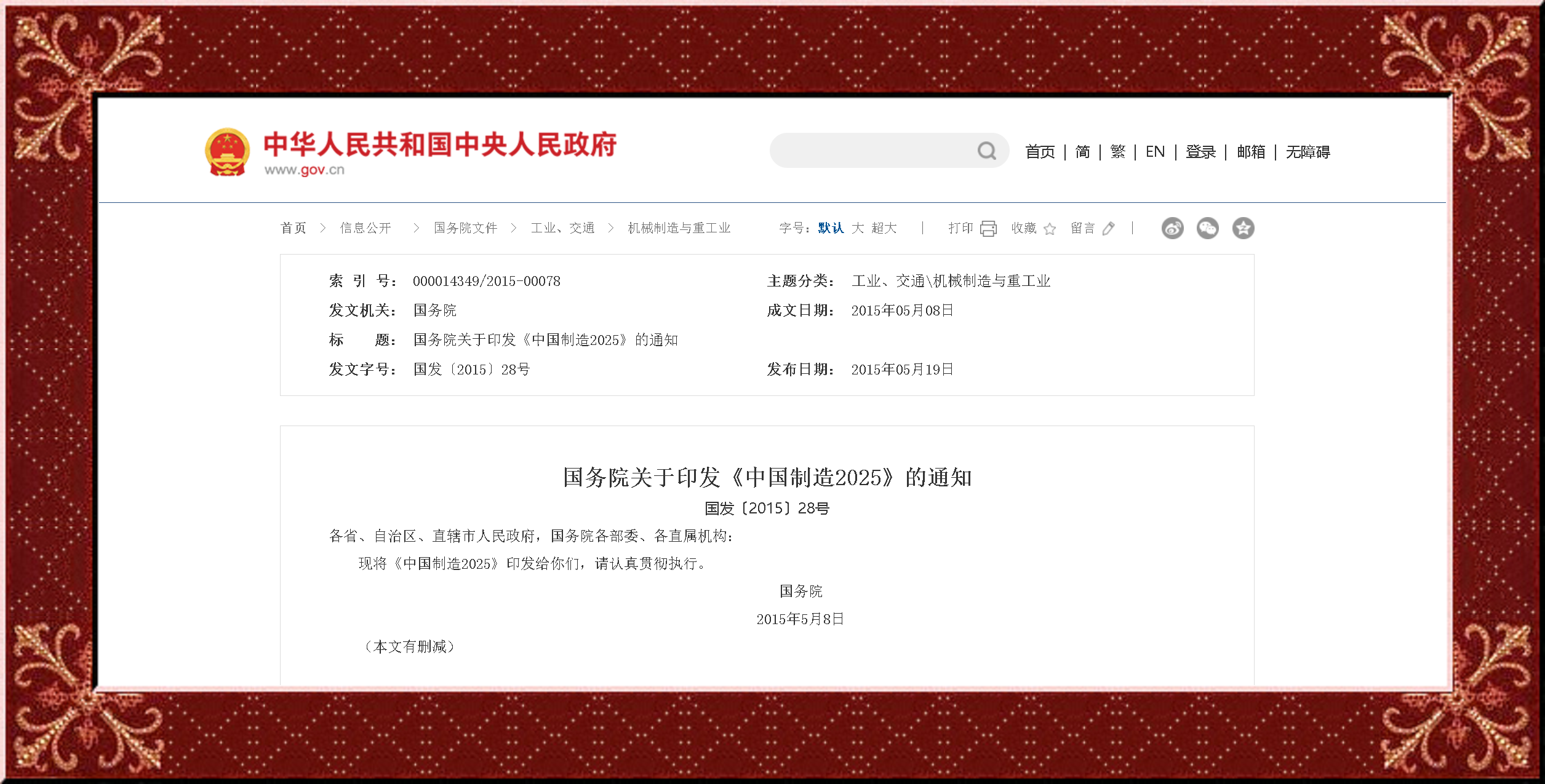 來源:發文字號: 國發〔2015〕28號 發布日期: 2015年05月19日