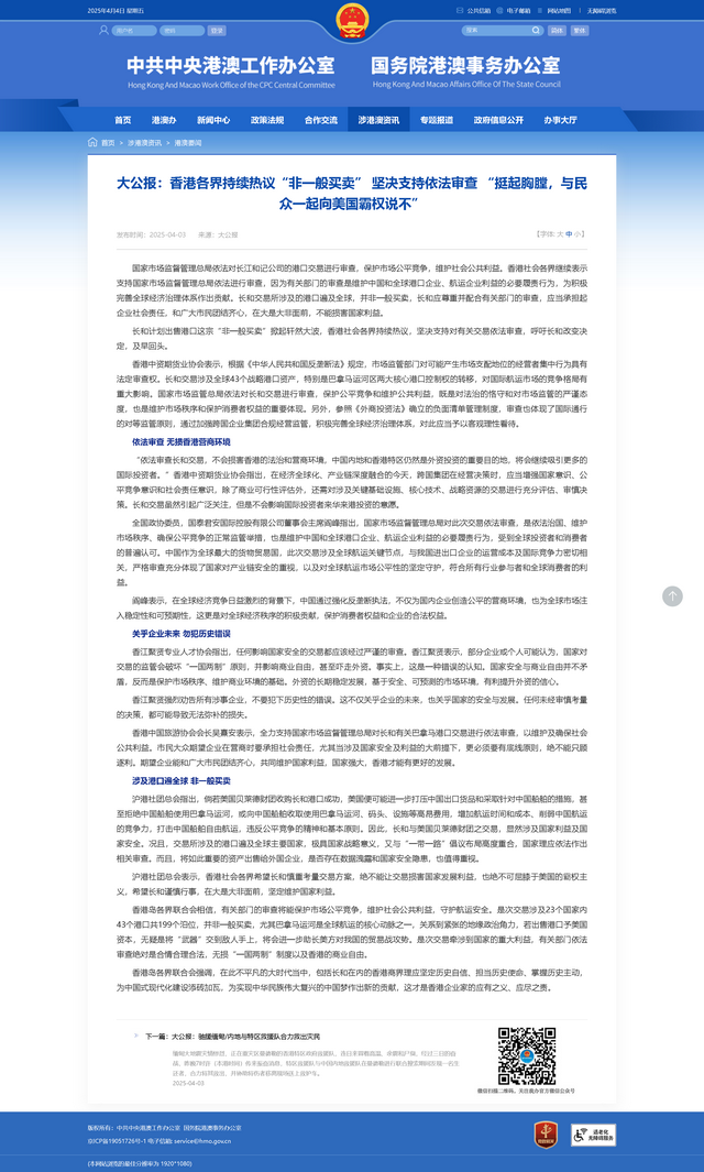 最近,有一件事在香港商界掀起了不小的波瀾。中共中央港澳辦官網轉載了《大公報》的評論,直接把李嘉誠家族企業長和集團給“點”了出來了,批評它拋售港口的行為,說這可能關系到國家的戰略的利益。這消息一出來,大家都在紛紛猜測,這背后到底是怎么回事呢?