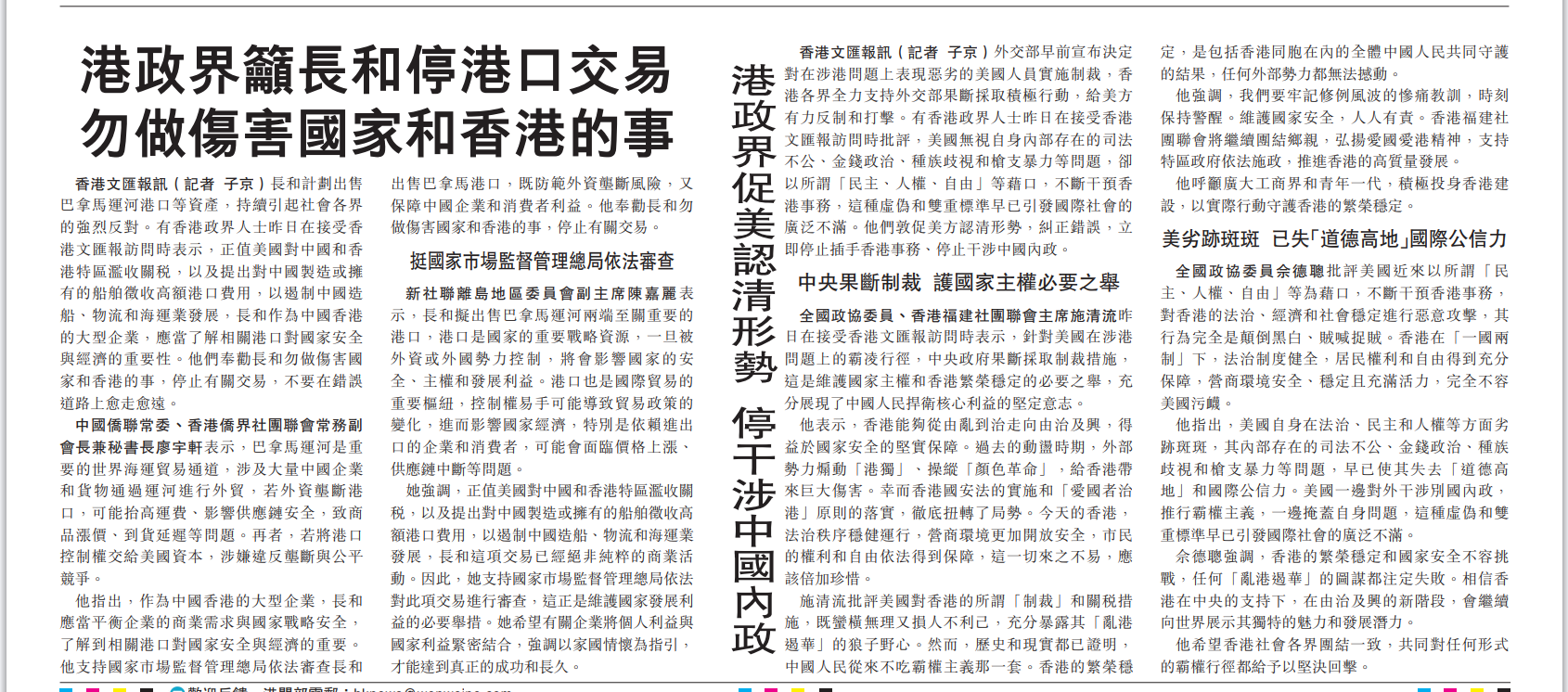 他指出,作為中國香港的大型企業(yè),長和應(yīng)當(dāng)平衡企業(yè)的商業(yè)需求與國家戰(zhàn)略安全,了解到相關(guān)港口對國家安全與經(jīng)濟(jì)的重要。他支持國家市場監(jiān)督管理總局依法審查長和出售巴拿馬港口,既防范外資壟斷風(fēng)險,又保障中國企業(yè)和消費(fèi)者利益。他奉勸長和勿做傷害國家和香港的事,停止有關(guān)交易。