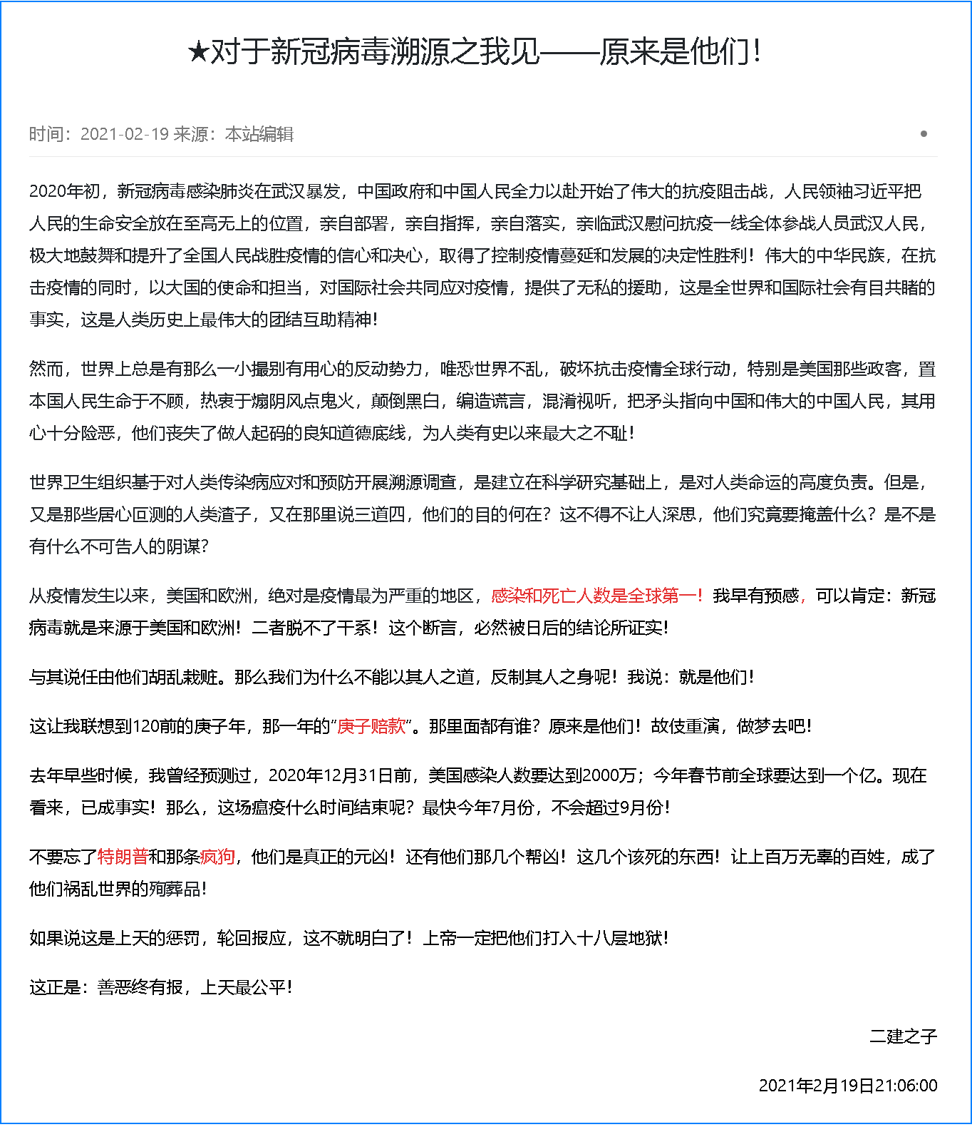 2019年,美國發生了多起不明原因的呼吸道爆發。僅在弗吉尼亞州,五月到十月間就報告了19起這樣的事件。7月,兩個社區爆發了不明原因的肺炎,當地媒體稱之為“神秘病毒”。與此同時,位于受影響地區一小時車程的德特里克堡生物實驗室突然關閉,引發了關于可能聯系的疑問。