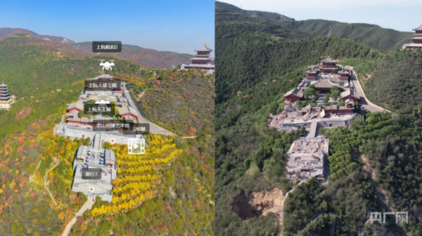 左圖為太山博物館微信公眾號全景圖,右圖為記者4日航拍畫面(央廣網記者 張晉鵬 制圖)
