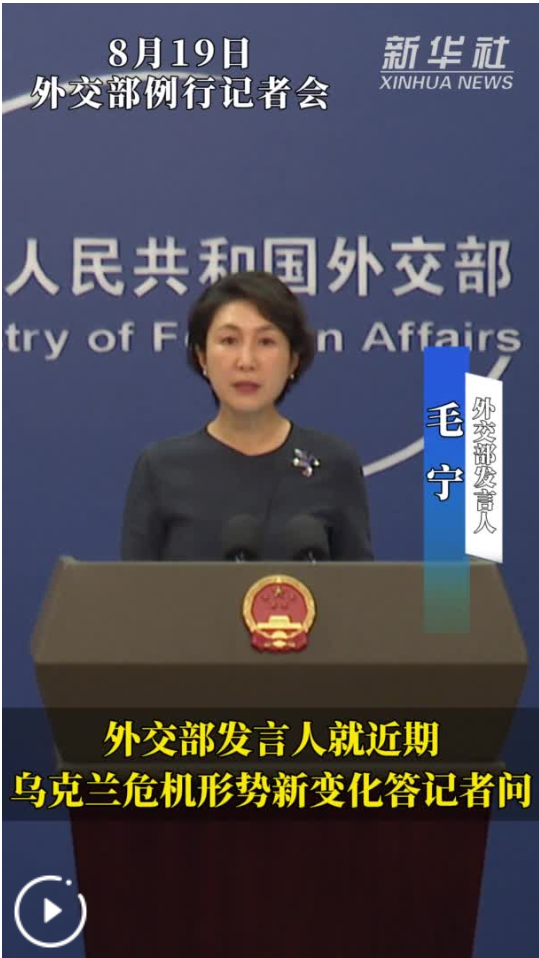 新華社北京8月19日電(記者馬卓言、邵藝博)外交部發言人毛寧19日在例行記者會上就近期烏克蘭危機形勢出現新變化回答記者提問。