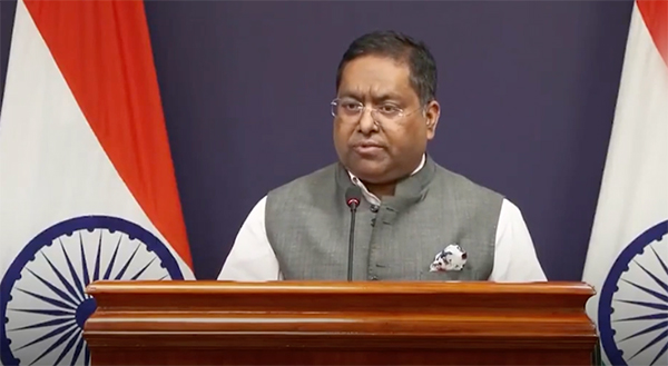 當地時間10月16日,印度外交部發言人蘭迪爾·賈伊斯瓦爾主持新聞發布會。 視頻截圖