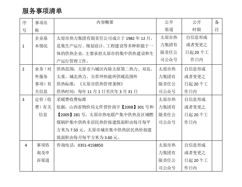 太原市熱力集團有限責(zé)任公司供熱服務(wù)范圍及服務(wù)電話