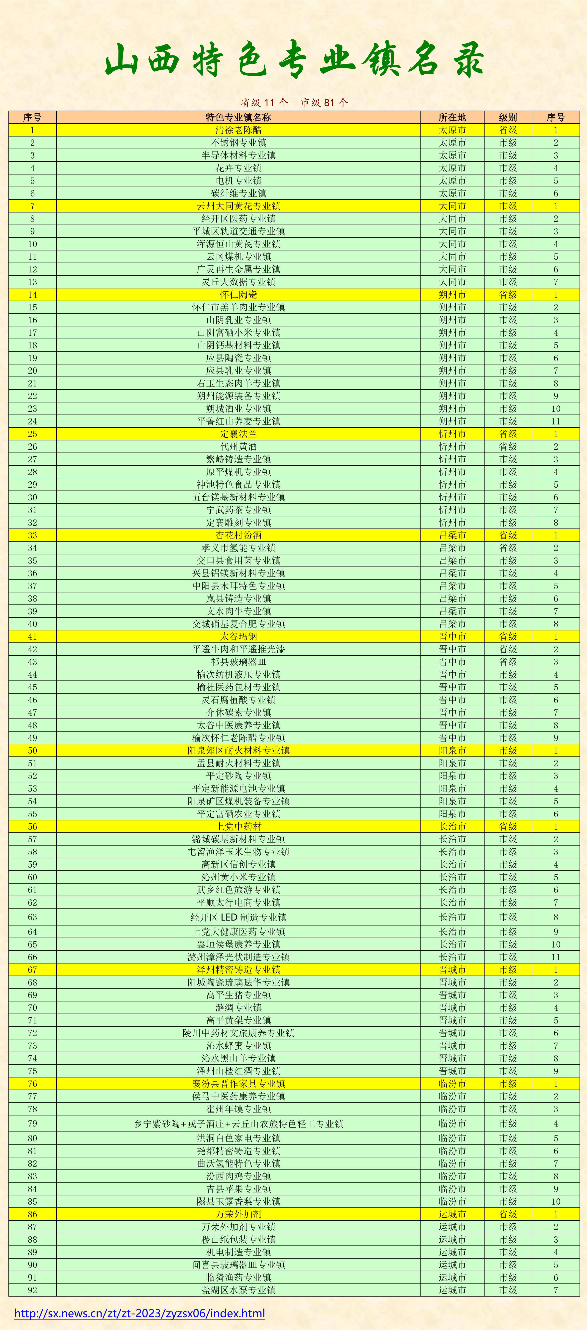 截至目前,山西共有92個省級、市級專業鎮。這92個專業鎮都有哪些?分布在哪里?有何特色?新華網山西頻道新晉青年工作室開發設計“山西省專業鎮全景圖”,全景式梳理展示各專業鎮特色清單,讓你一鍵掌握山西92個特色專業鎮的各自情況、亮點、特色。