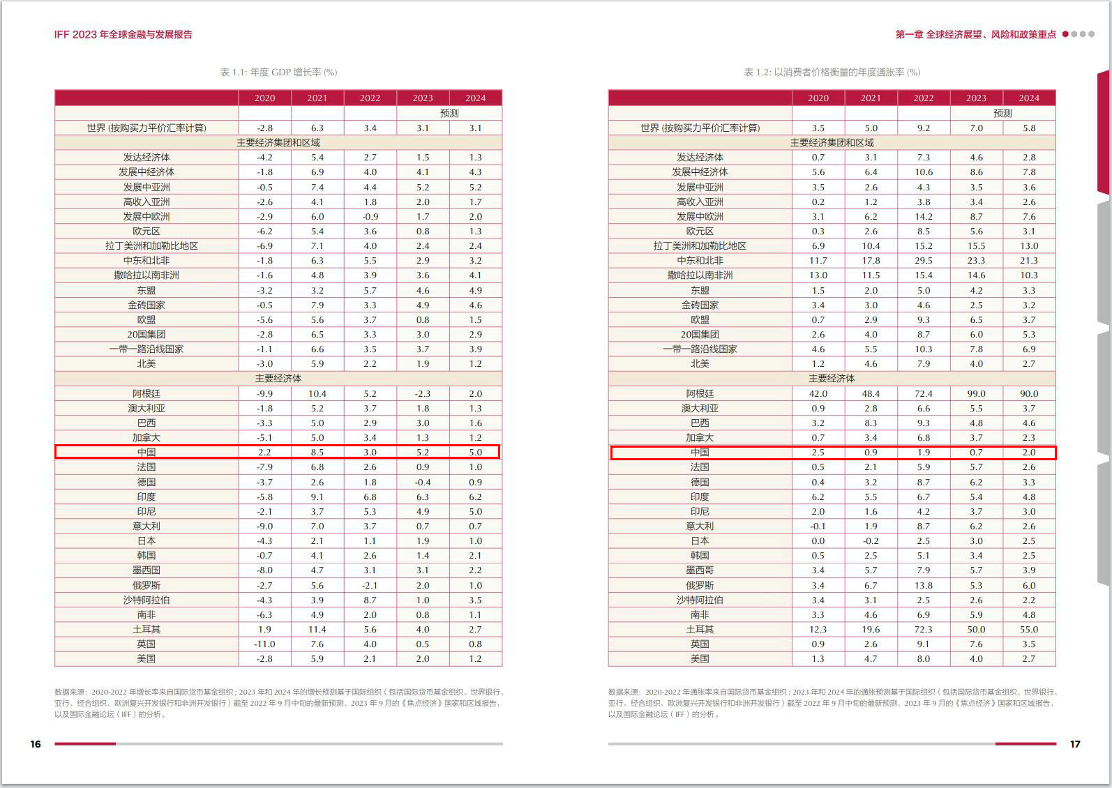 中新網(wǎng)廣州10月28日電(中新財經(jīng) 宮宏宇)“2023年全球經(jīng)濟增長進一步放緩,預期增長3.1%,低于2022年的3.4%。2024年,全球經(jīng)濟增長預計將保持在3.1%的疲軟水平。中國經(jīng)濟2023年和2024年預計將分別增長5.2%和5%。”國際金融論壇(IFF)20周年全球年會上最新發(fā)布的《IFF2023年全球金融與發(fā)展報告》指出。
