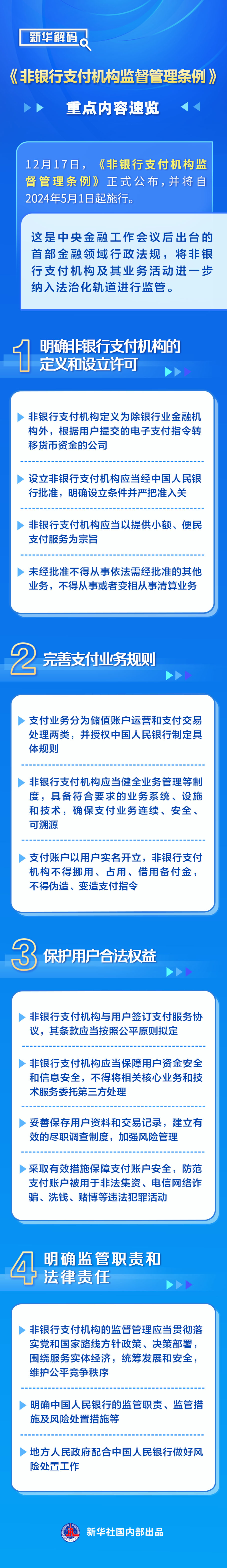 新華社北京12月17日電 題:這部法規事關非銀行支付,一起來看關鍵內容
