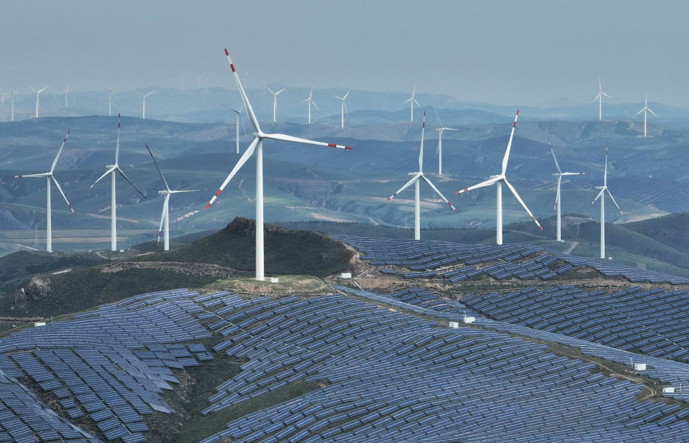 這是2023年9月2日拍攝的承德市豐寧滿族自治縣萬勝永鄉萬勝永村附近的一處風光互補發電場(無人機照片)。新華社記者楊世堯 攝